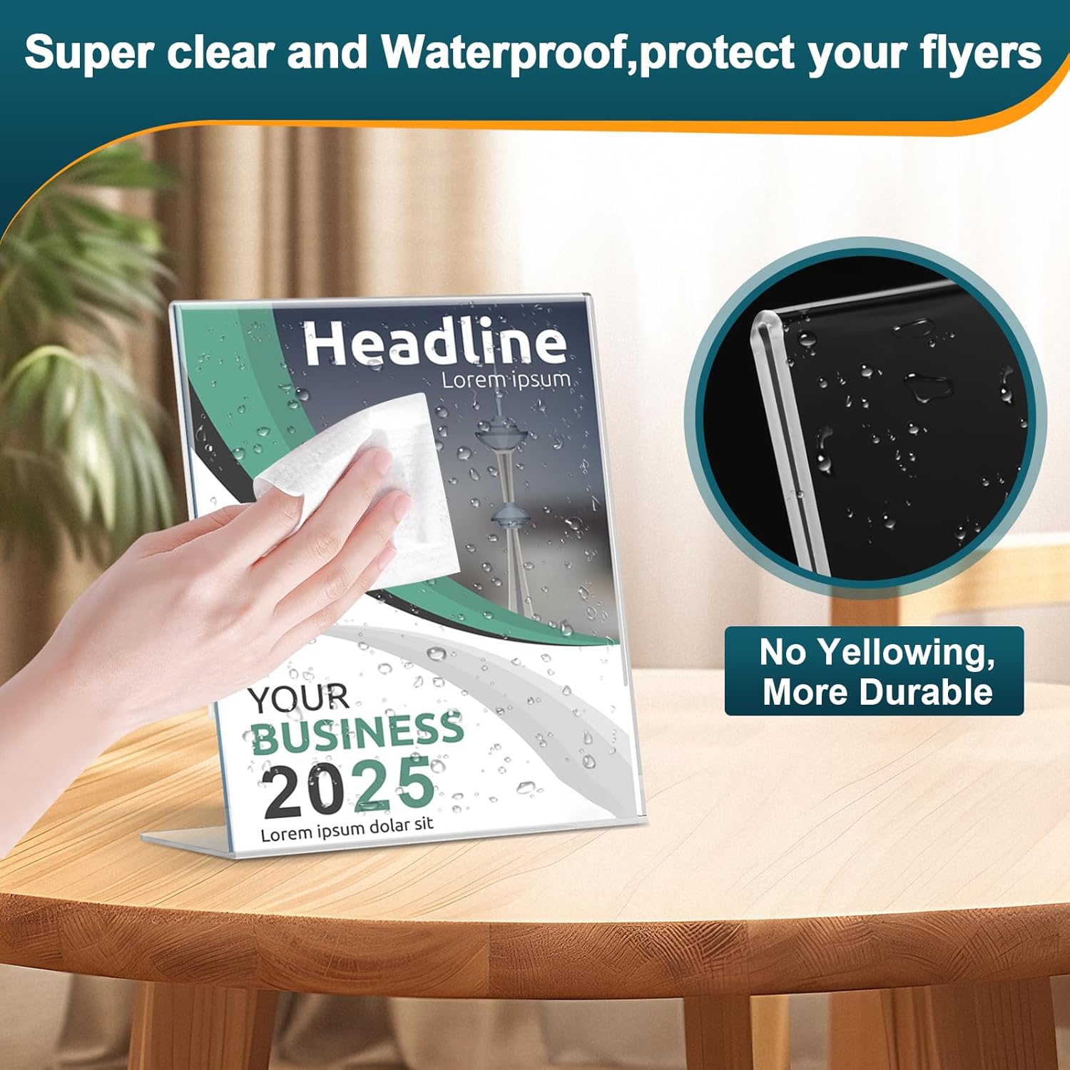 - 【Premium Acrylic Material】Our 5x7 acrylic sign stands are made of high-quality acrylic plastic glass, which can effectively resist falling. The clear acrylic sign holder will not dim or turn yellow under continuous exposure to the sunlight which offers a superb display effect, supply long-lasting strength and use.