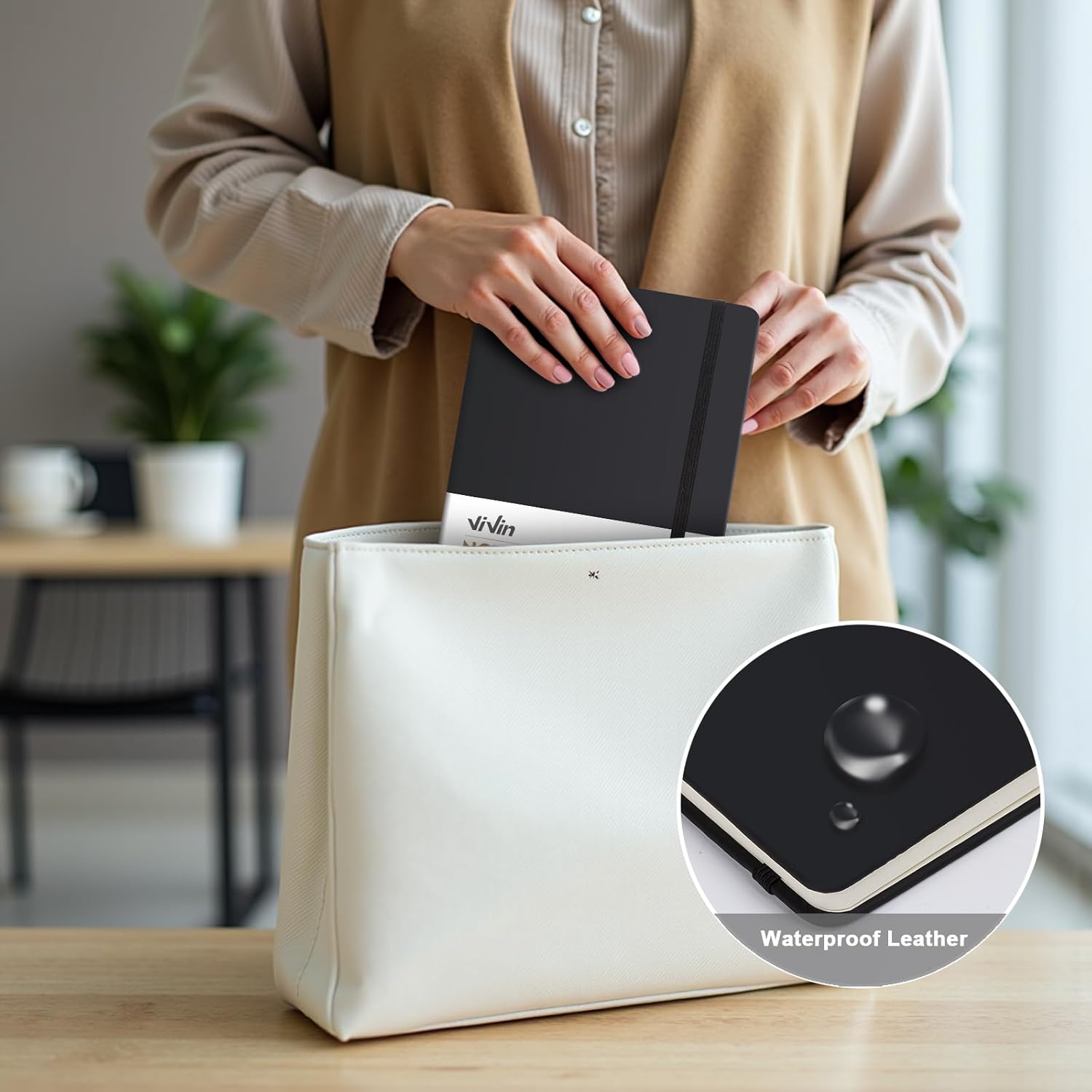 - 【Hardcover Leather Journal】The journaling notebooks crafted with waterproof faux leather, this A5 notebook (5.5"x8.3") balances durability and portability. The smooth-touch cover withstands daily commutes while protecting your ideas in style.