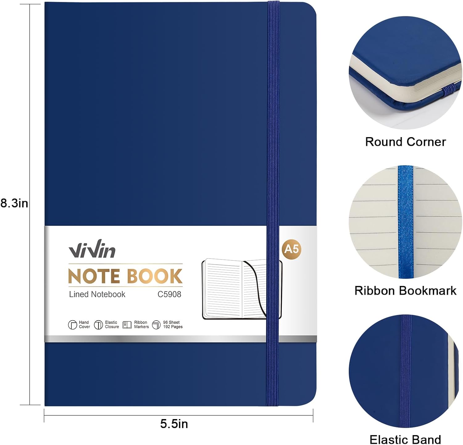 ViVin Lined Journal Notebooks for Work, 192 Pages, Medium 5.5 x 8.3 inch, College Ruled, A5 Hardcover Journaling Notebooks for Writing, 8 Pack Bulk