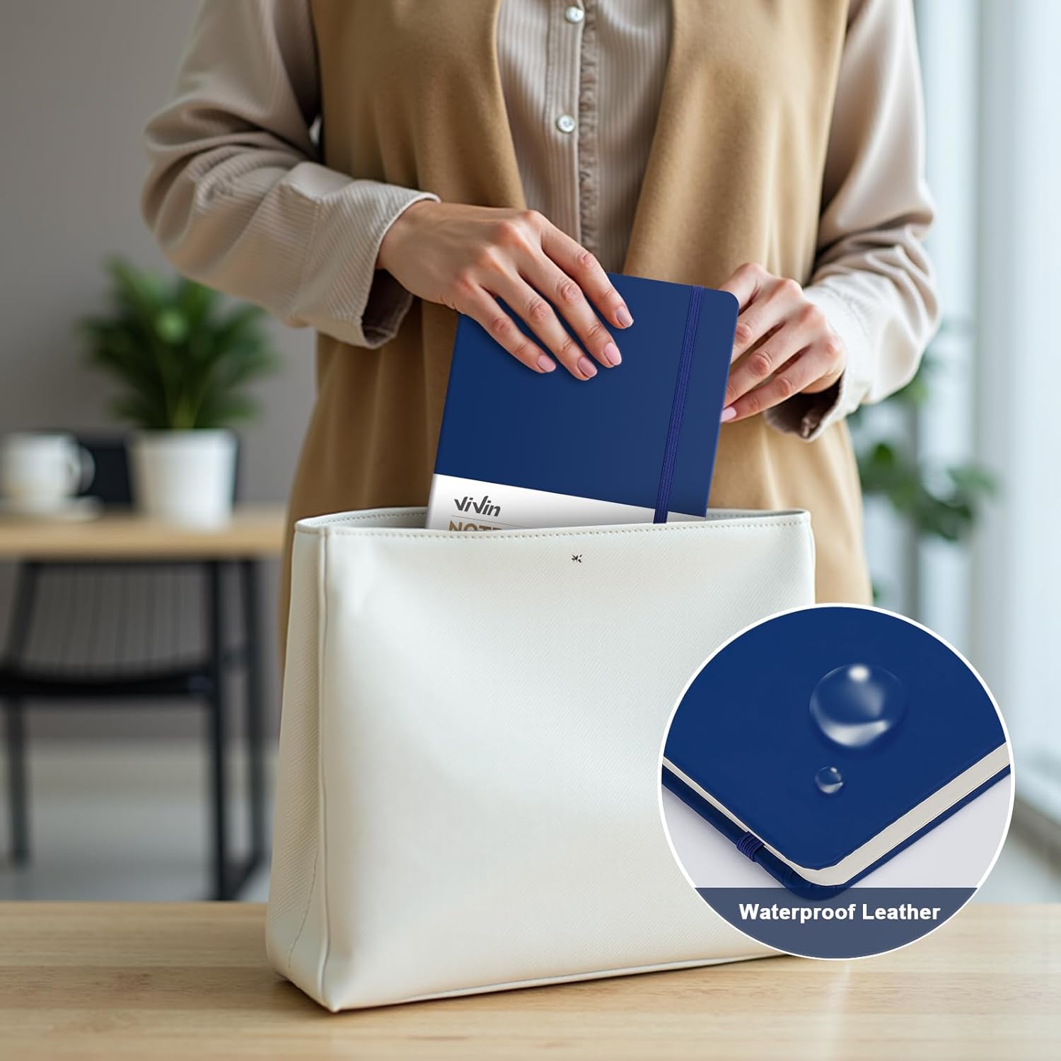 - 【Hardcover Leather Journal】The journaling notebooks crafted with waterproof faux leather, this A5 notebook (5.5"x8.3") balances durability and portability. The smooth-touch cover withstands daily commutes while protecting your ideas in style.