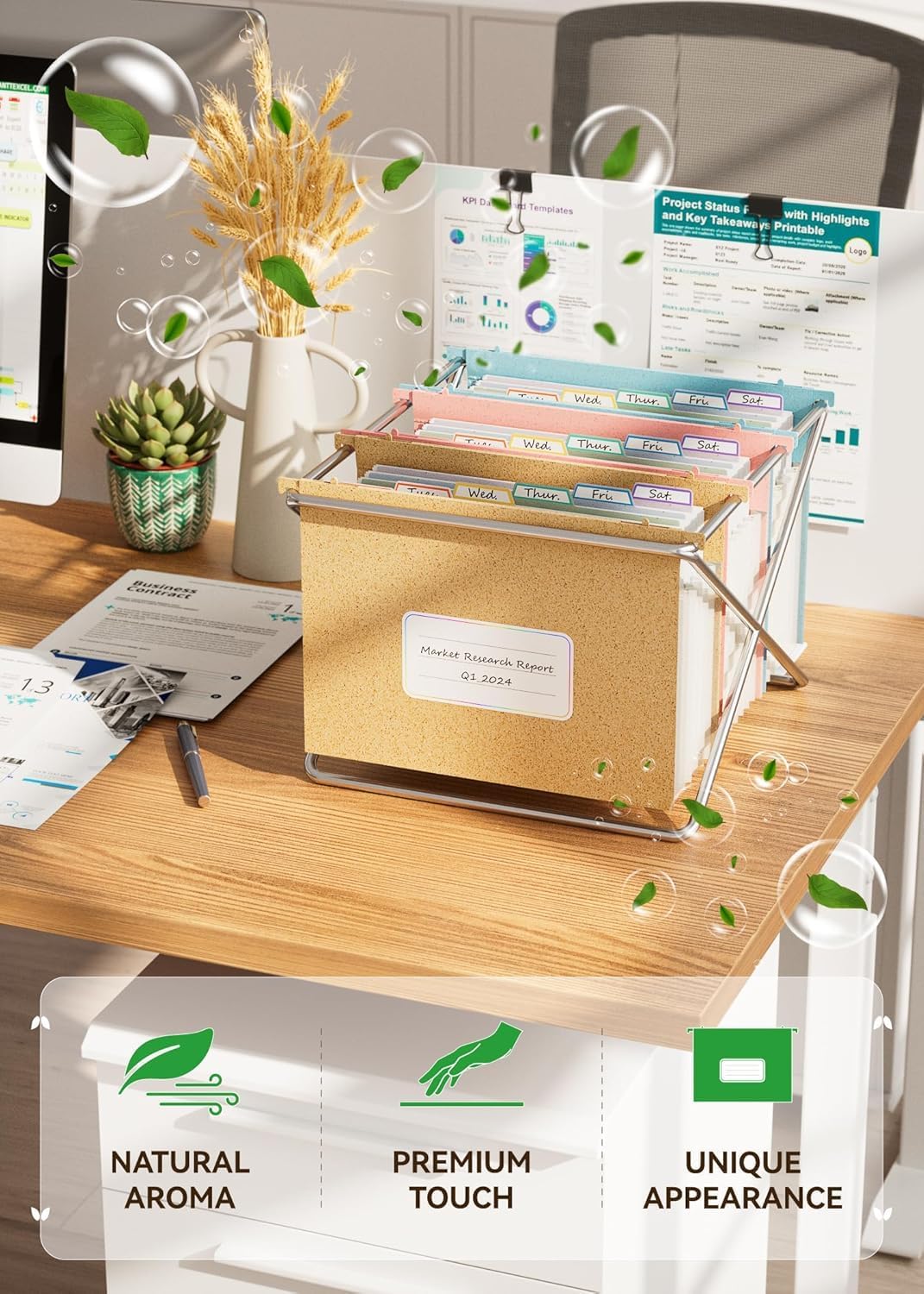 - 【Natural Texture and Unique Appearance】 EcoStash's wheat straw material Hanging File Folders are designed for letter size documents and fit most standard file cabinets. Emitting a natural fragrance, it possesses a unique touch and distinctive appearance. Its standout aesthetics allow you to experience the ambiance of nature in your daily usage. Through a design that caters to the senses of smell, touch, and sight, you'll stand out in your everyday use, adding a unique style to your document organization and protection.