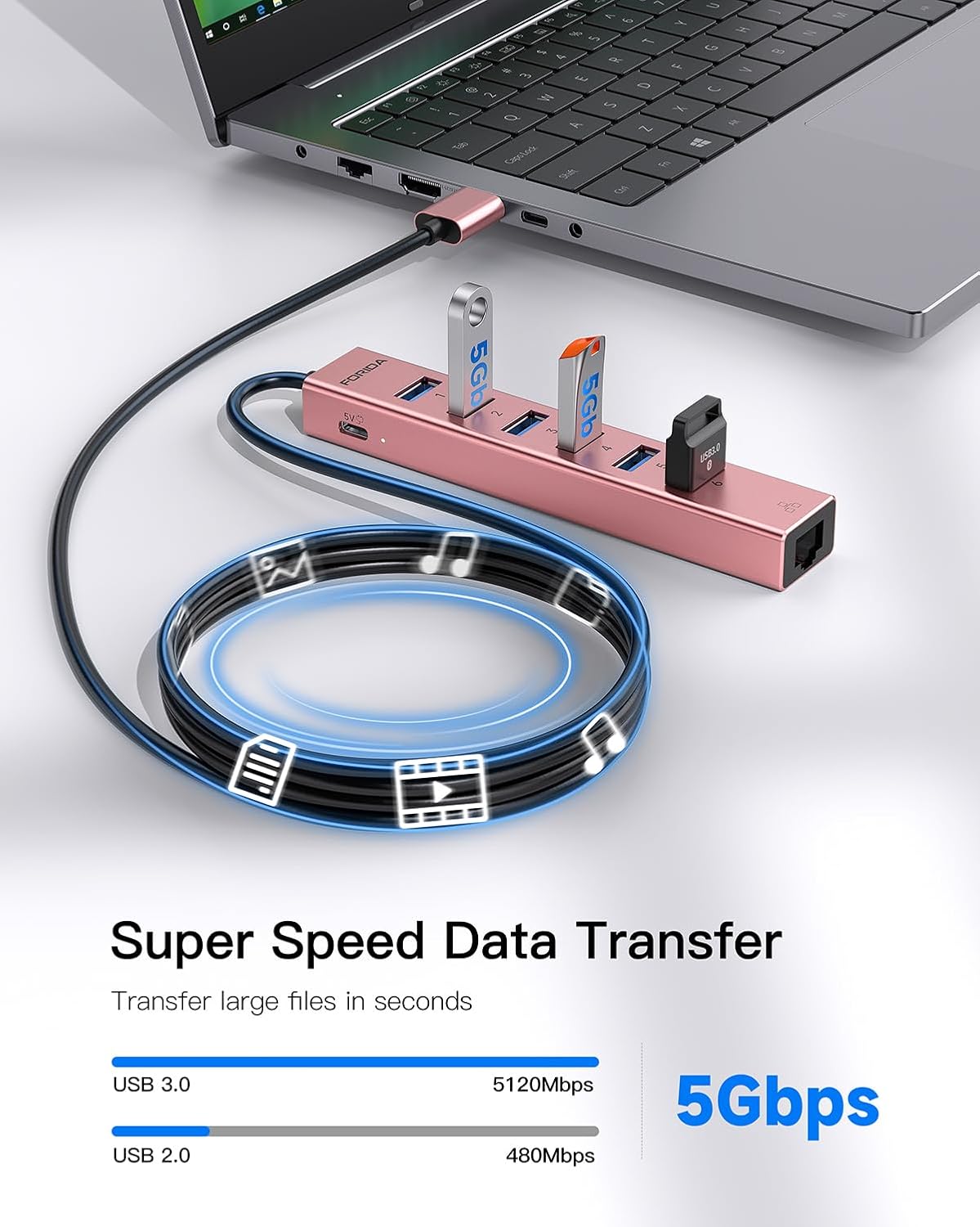 - 【5Gbps Data Transfer Speed】The USB 3.0 Hub extension provides up to 5 Gbps data transfer speed, which is more than 10 times faster than USB 2.0, and it is backwards compatible with USB 2.0/1.0
