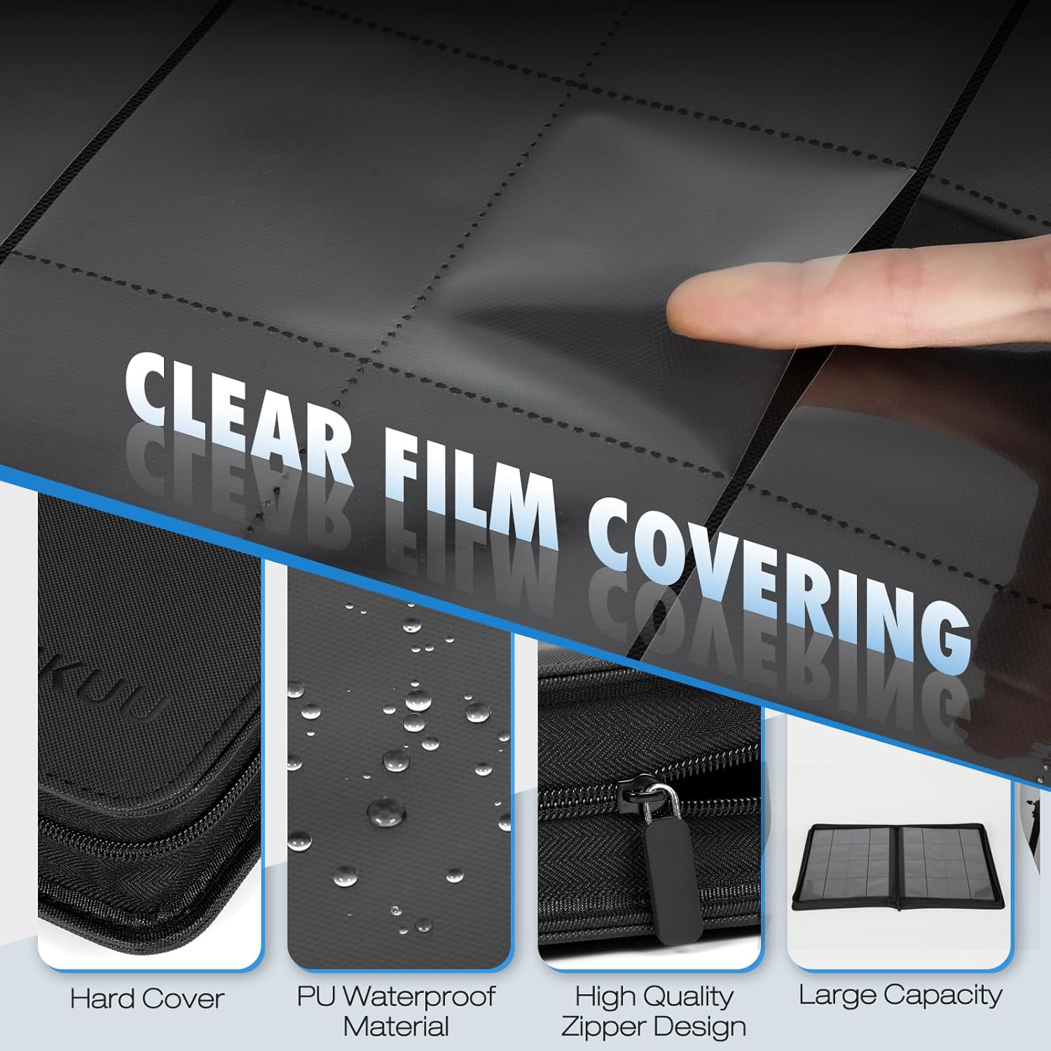 - 【Premium Material】Card Binder is designed with PU leather material, this trading card binder is not only stylish but also ensures durability and long-lasting performance.The waterproof and durable card sleeves provide extra protection for your cards, keeping them safe from spills, moisture, and everyday wear and tear.