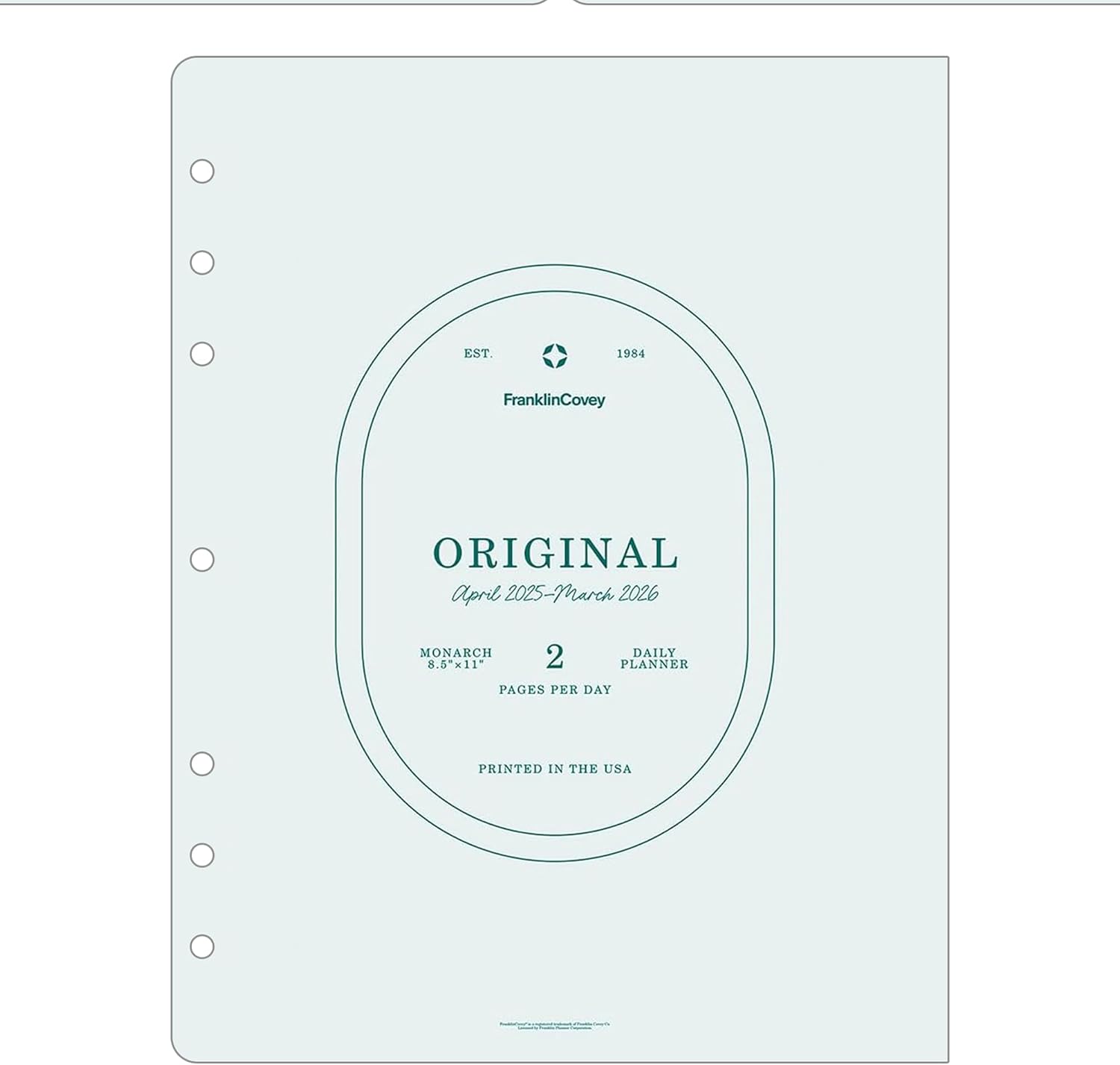 FranklinCovey - Original Two Page Per Day Ring-Bound Planner (Monarch, Apr 2025 - Mar 2026)
