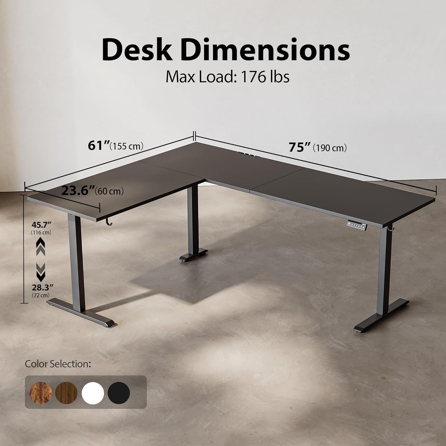 Agilestic L-Shaped Standing Desk Adjustable Height, Electric Corner Standing Desk, Sit Stand Up Desk, 75x61 inch Sit Stand Computer Table, Black
