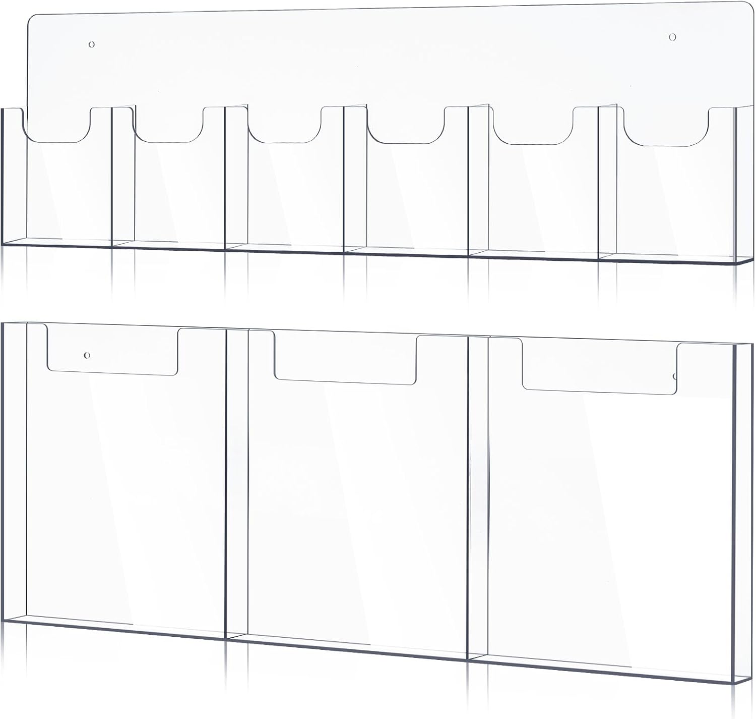 - 9 Pockets Available: there are 2 acrylic brochure holders, 9 pockets in total, 6 small pockets can hold 4 x 9 inch brochures, 3 large pockets can hold 8.5 x 11 inch brochures, suitable for displaying individually or in combination, providing an elegant solution for displaying brochures