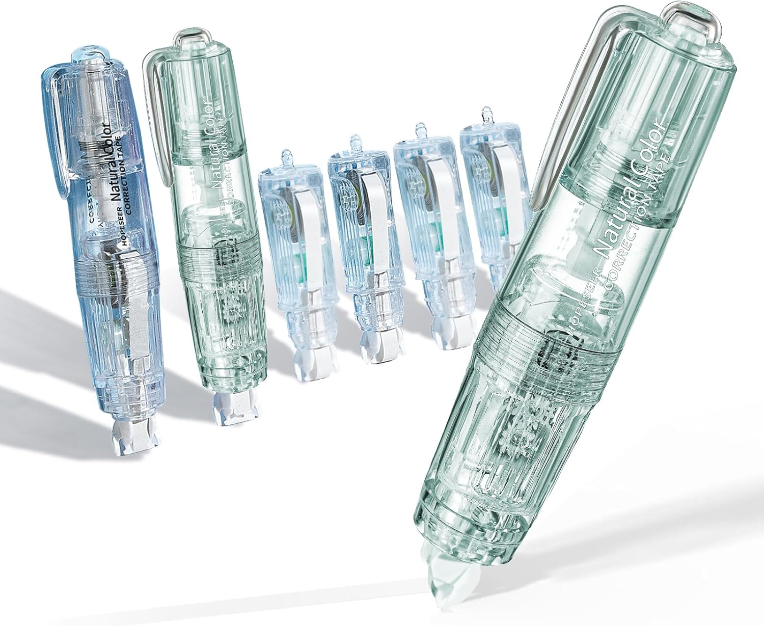 White Retractable Correction Tapes, 2 Cute Pre-Loaded Correctors with 4 Refills, Pull-Out Pen-Shaped Applicator, Anti-Break Tape for Office Supplies (Transparent, Green)