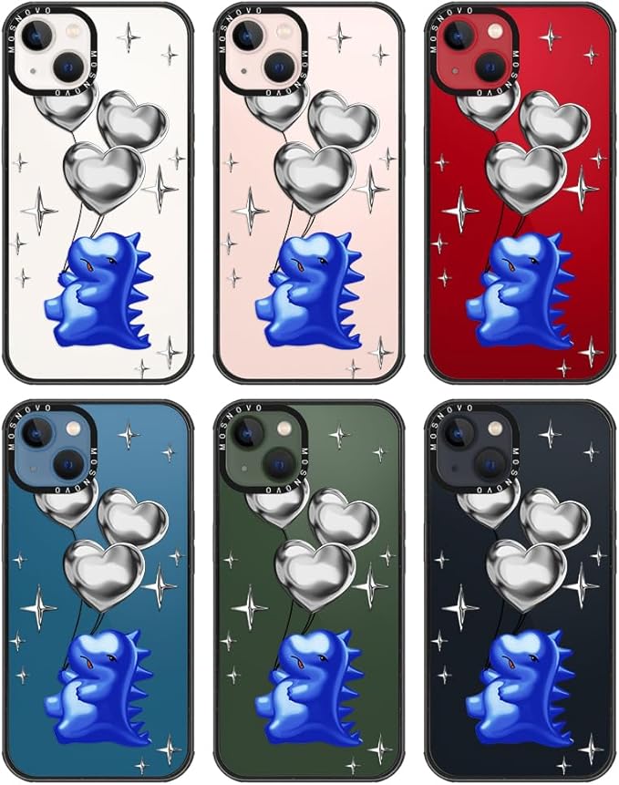 MOSNOVO Case for iPhone 13 / iPhone 14, [10ft 4X Military-Grade Drop Protection] Durable & Shockproof Phone Case Cover Design for iPhone 13 / iPhone 14 - Balloonasaurus - Clear Black