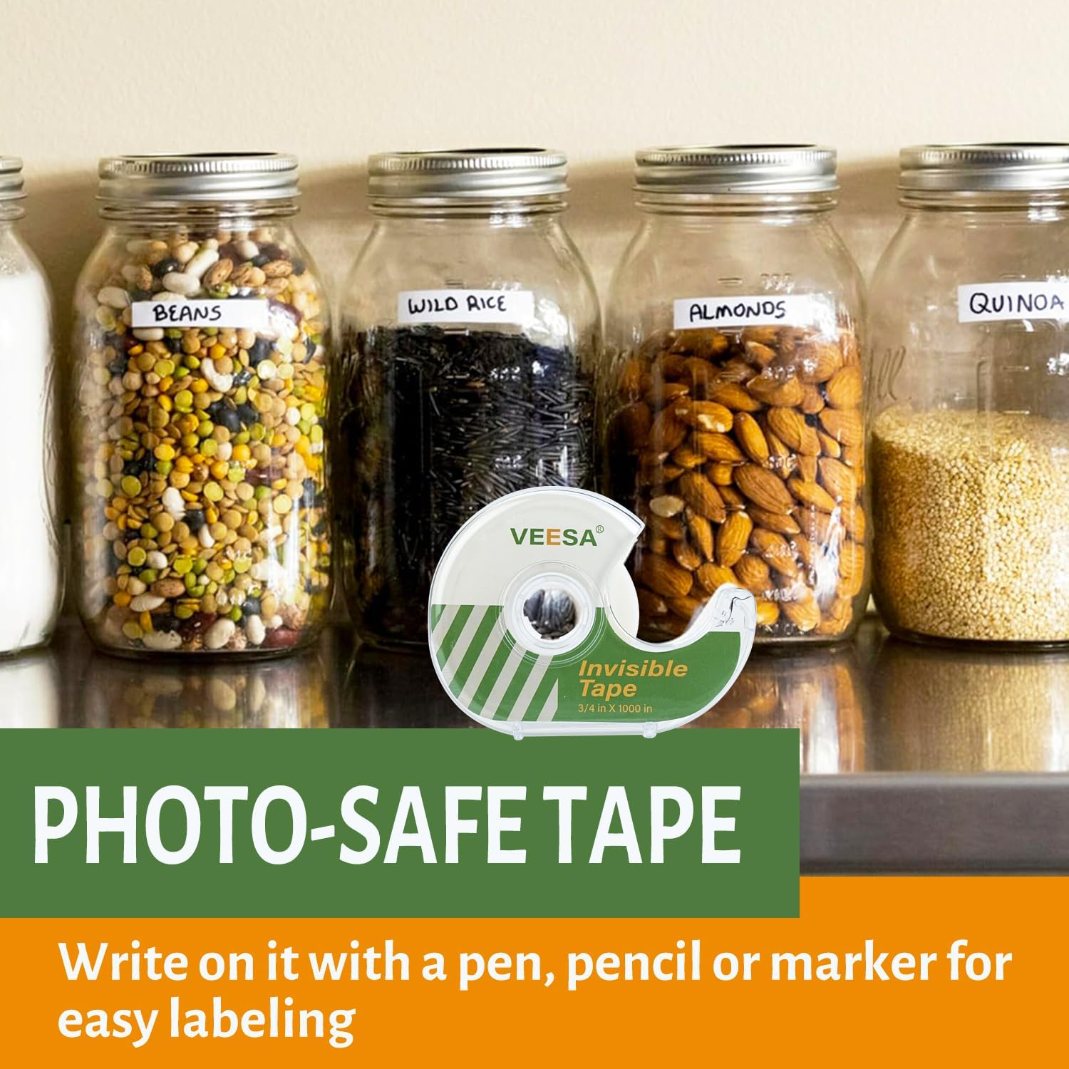 VEESA 12 Rolls Invisible Tape with Dispenser, 3/4 x1000 Inches, Gift Wrapping Tape for Label & Mend, Classroom, Office, School Supplies