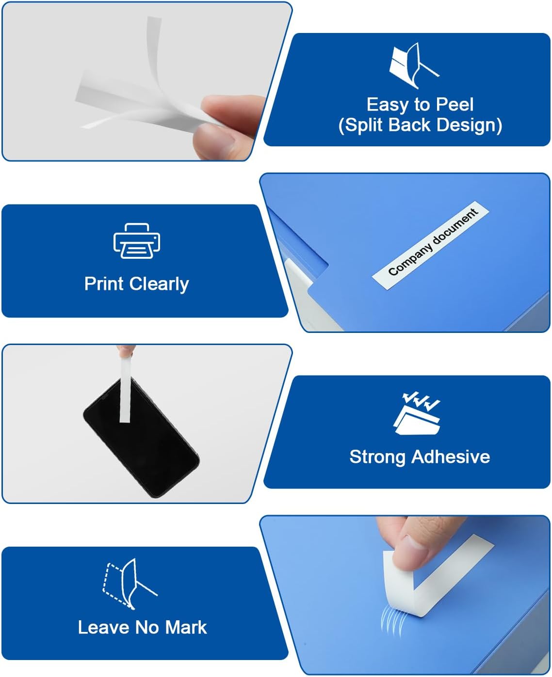 - Easy to use: These TZ 12mm 0.47 Laminated White tapes comes with split backing design, the backing tape is split lengthwise in the middle for easy peeling, and all of Labelwell Laminated White TZe TZ Tapes with the feature of water resistant, temperature resistant, fade resistant, oil resistant, abrasion resistant, chemical resistant, and no sticky residue