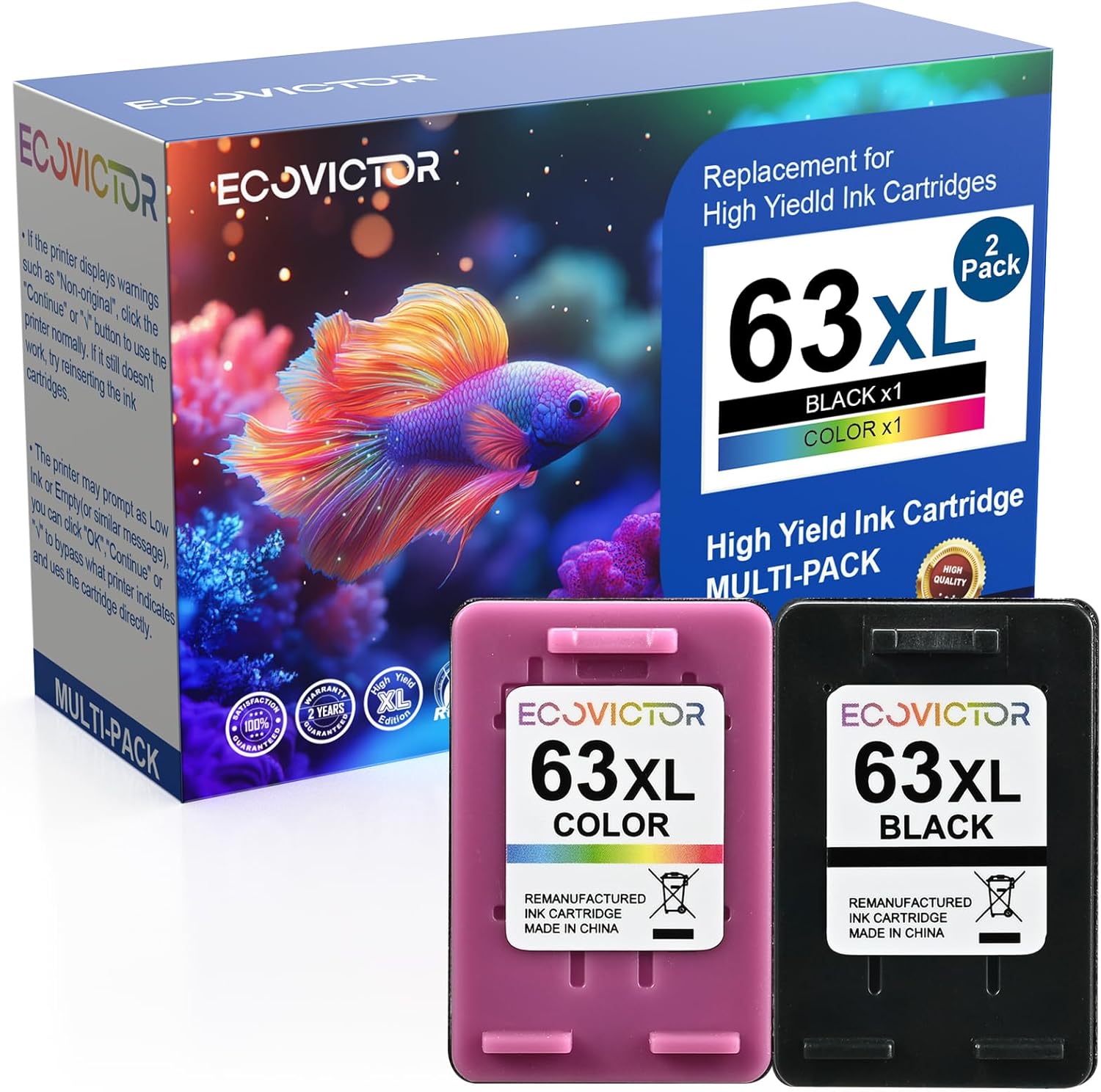 - High Yield: EcoVictor for hp ink 63xl black and color combo pack page yield is up to 650 pages per 63xl black ink cartridge, and 400 pages per 63xl color ink cartridges (depends on printer and usage).