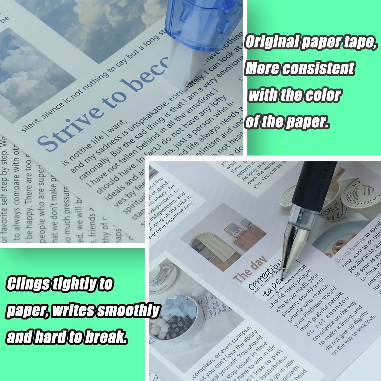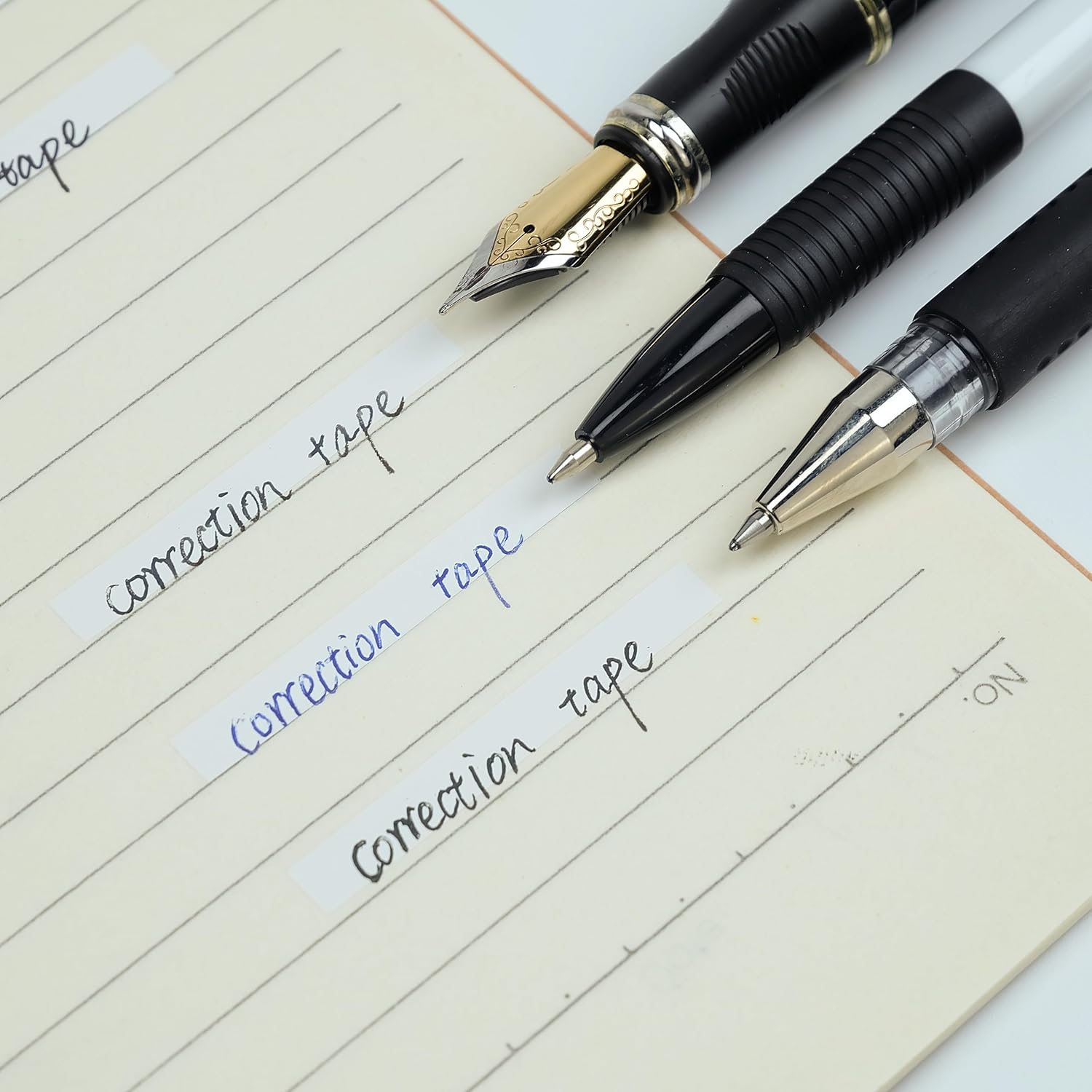 - Our correction tape is suitable for correcting a variety of pens. Can be written on immediately (already dried), provides a pleasant correction experience, and compared to correction liquid, it does not have any unpleasant smell.