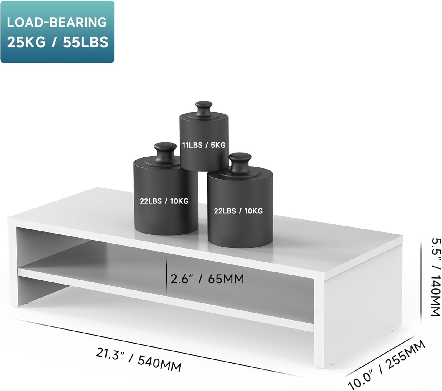 - 【Anti-slip Legs for Stable Stand】The laptop monitor stand is made of 15mm MDF for a beautiful appearance and easy to keep clean. Rubber skids on the bottom of the legs prevent the stand from sliding freely. Tough enough for printers, laptop, desktop or any other type of heavy equipment.