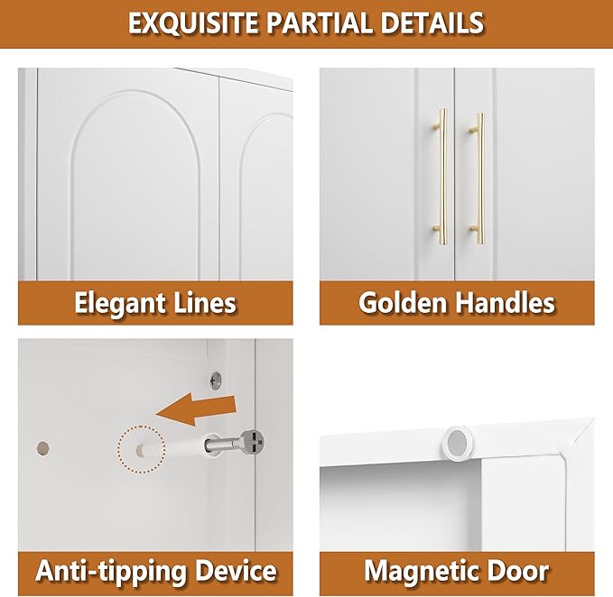 - STYLISH APPEARANCE: Simple white lines make the white storage cabinet more elegant and beautiful, and complement various decorative styles