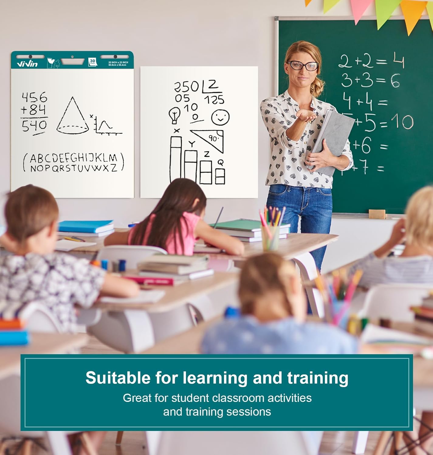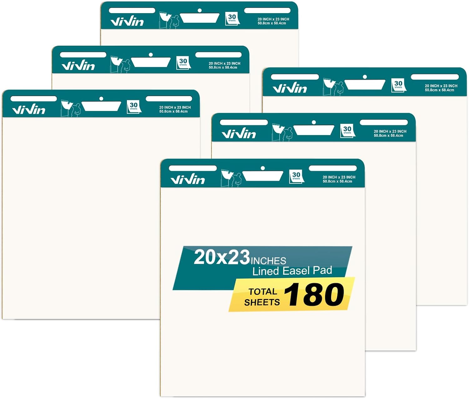 ViVin Sticky Easel Pad, 20 x 23 Inches Flip Chart Paper for Teachers and Students, Self Stick Easel Paper, 30 Sheets/Pad, 6 Pads/Pack