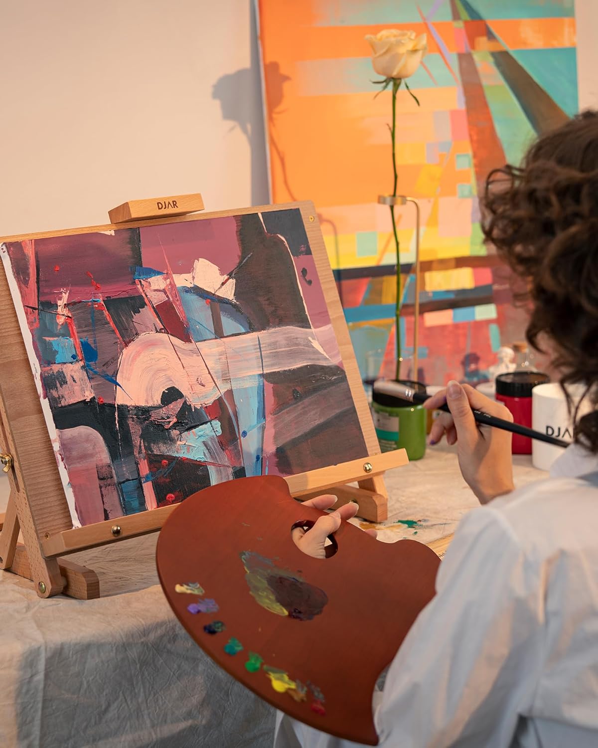 - Fully Adjustable & Ergonomic Design for Comfort: The DJAR desktop easel allows you to adjust the angle from 0°- 80° vertical to horizontal, providing ultimate flexibility for any painting style. The customizable bottom tray height ensures a comfortable posture, minimizing neck and shoulder strain—ideal for drawing, watercolor, and portrait painting
