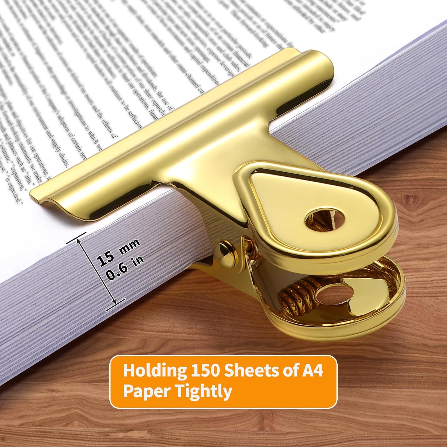 SIAMESE Bulldog Clips, 8 Pcs Binder Clips for Office & Kitchen, Multi-Purpose Binder and Food Bag Clamps for Sealing, Storage, Hanging (Gold)
