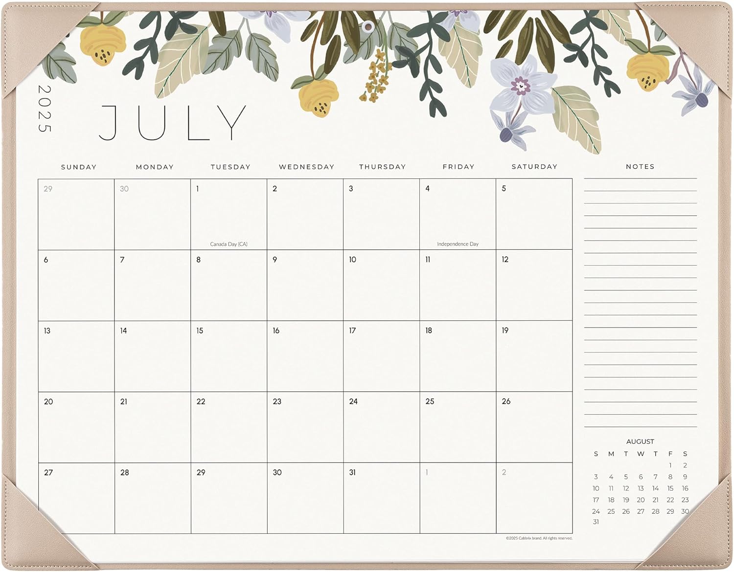 Desk Calendar 2025-2026 with Desktop Mat, Cabbrix Large Desk Pad Calendar 22 x 17 Inch Runs From July 2025 to December 2026, Floral Design Calendar 2025 for Home School and Office (Apricot)