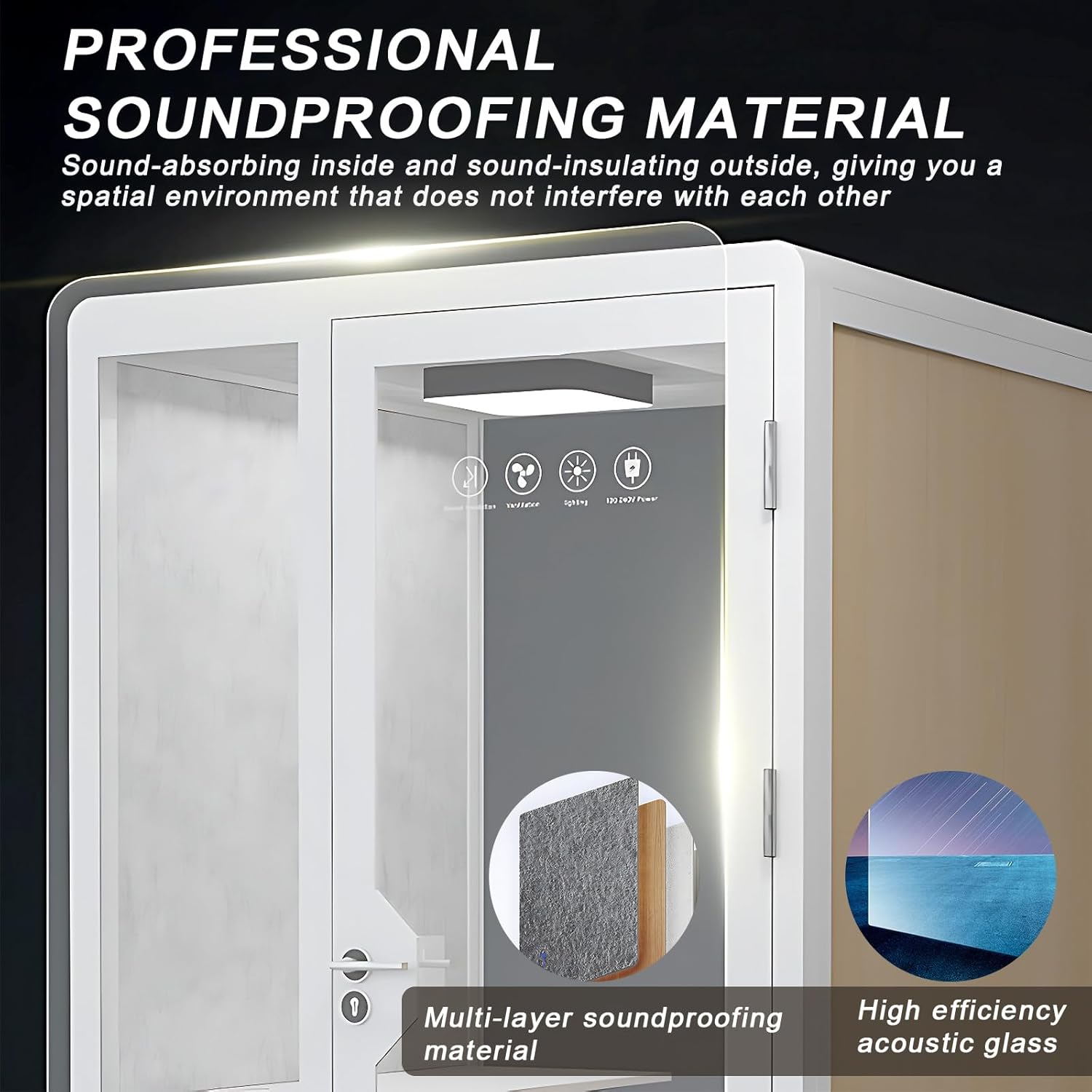 Office Sound Booth with Audio Privacy - Removable Soundproof Booth Includes White with Wood Grain Side Trim,Soundproof Room with Light,Fans, Socket for Singing Room,Telephone Booth (51.18IN)