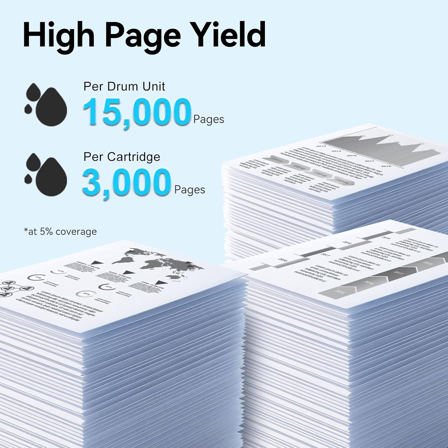 - Estimated Page Yield: Up to 3,000 pages per TN830XL toner and 15,000 pages per DR830 drum unit compatible for Brother DR830 toner cartridge (Letter/A4, at 5% coverage)