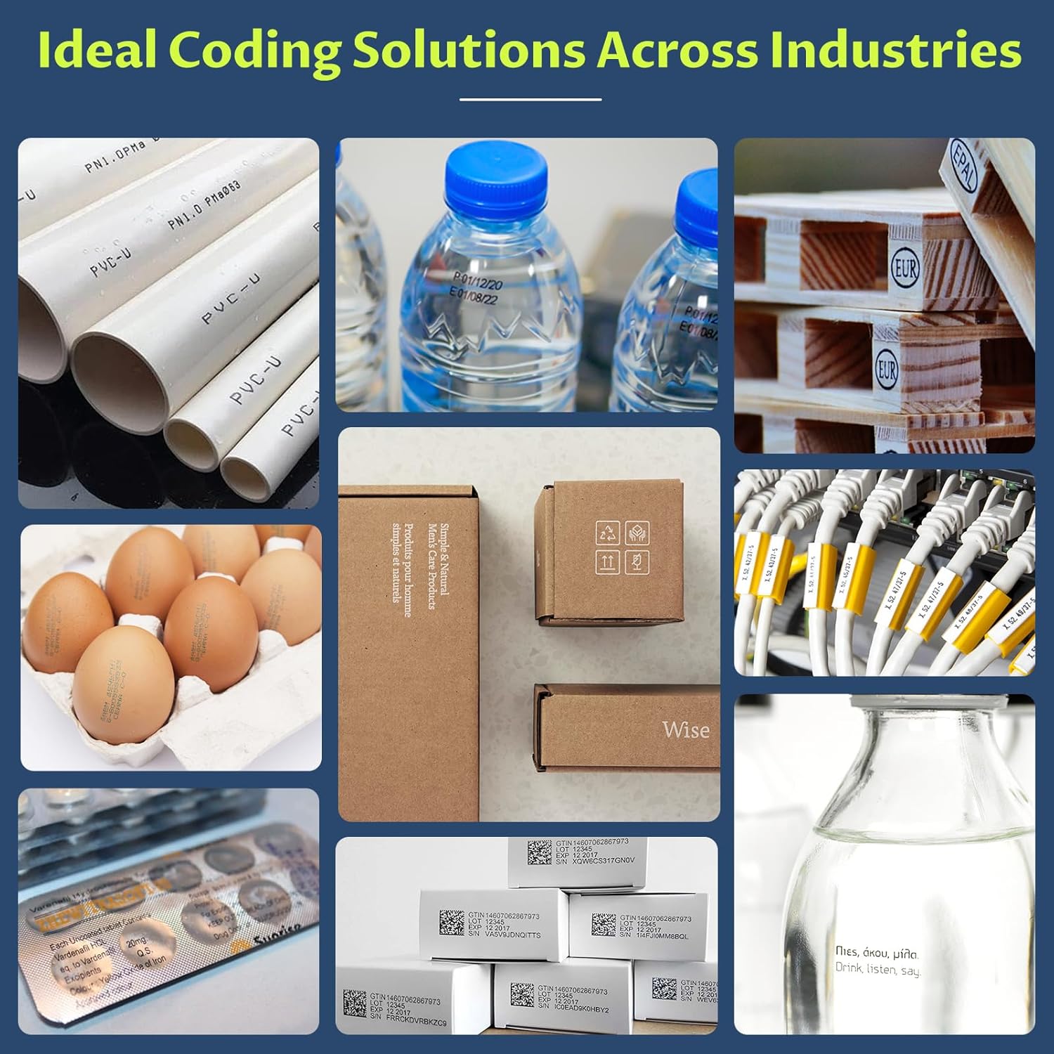 - Adjustable Printing for Multiple Surfaces: Print up to 5 lines of text with customizable heights (0.8mm to 12.7mm) on porous and non-porous materials like carton, wood, plastic, metal, and more. Ideal for batch codes, barcodes, and logos and variable data.