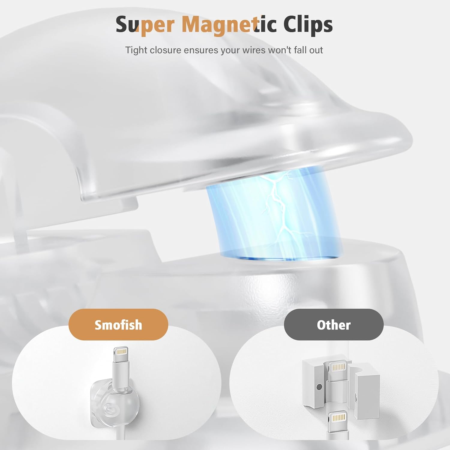 Cord Organizer Holder 6 Pack, [1-Handed-Operation] Magnetic Cable Clips, Phone Cord Clips Organizer with 2 Extra Reusable Strong Adhesive for Nightstand Car Workspace Office Accessories, Clear White
