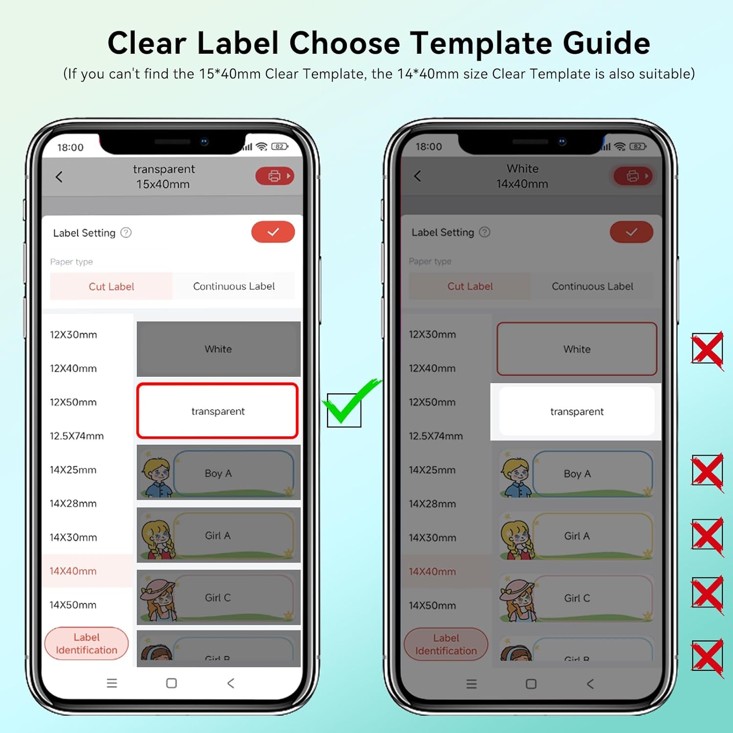 - Clear Labels Guide — Select The Clear Template before printing. If it is not selected correctly, it may not be able to recognize the clear labels, resulting in printing misalignment and other problems.