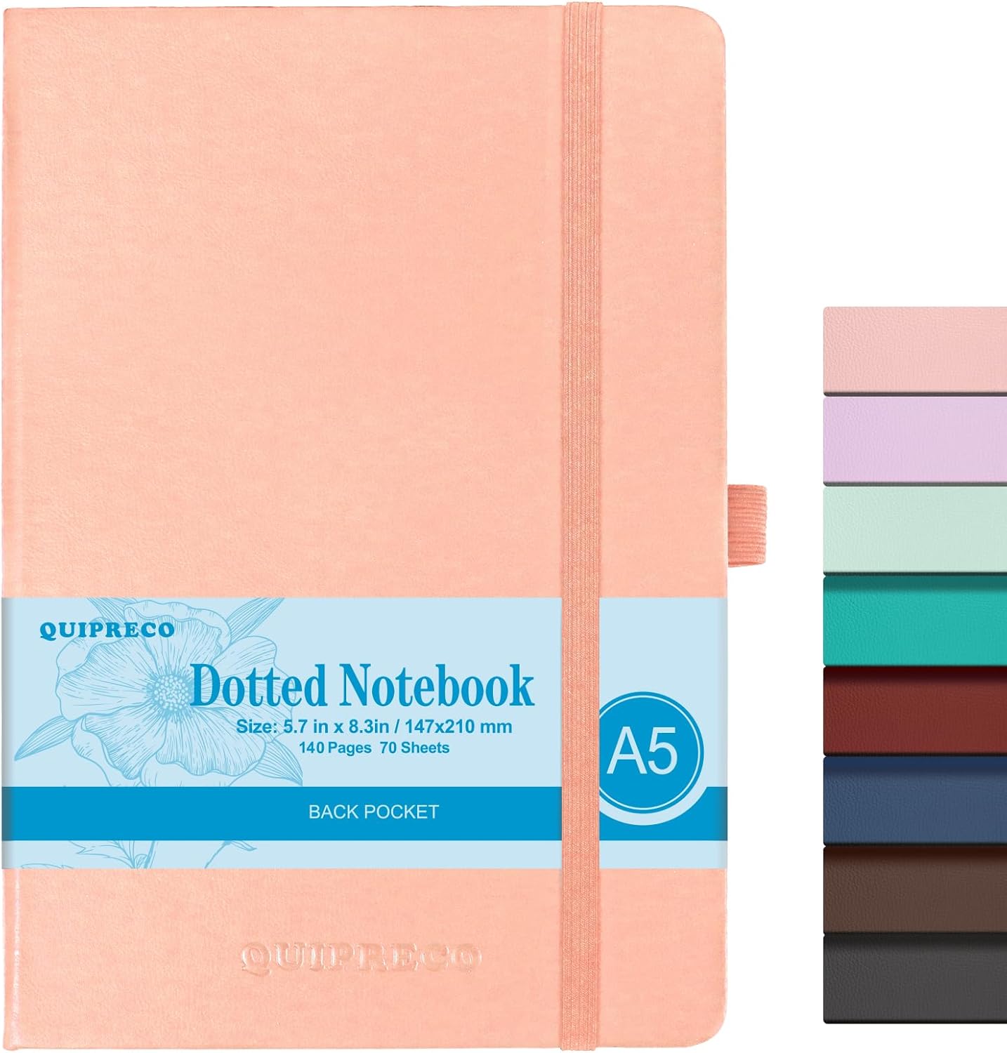 Bullet Dotted Hardcover Journal Notebook, A5 140 Pages 120Gsm Thick Paper for School,Note Taking,Work,Diary,5.7''*8.3'',Blush