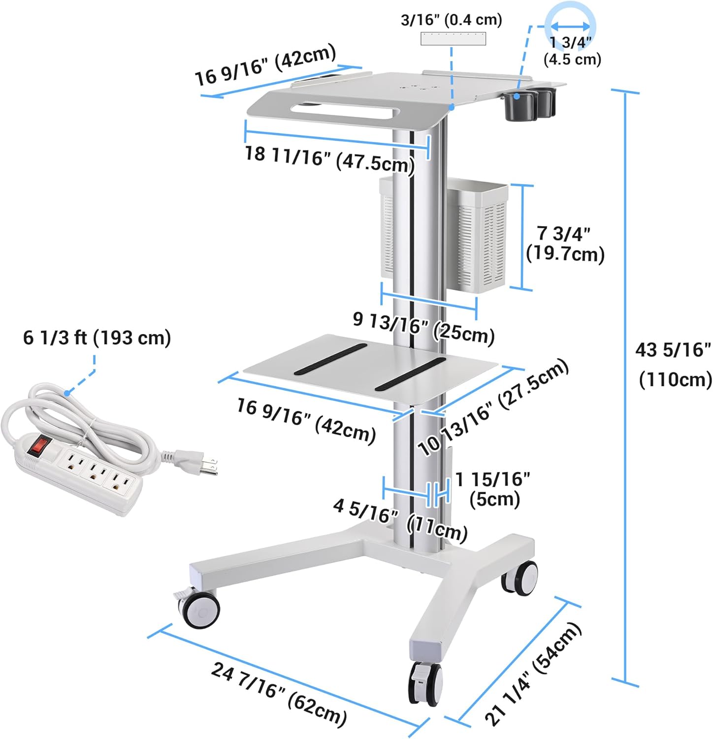 - Multi-functional & Integrated Mobile Medical Cart- Come with 2 trays, 1 basket, and 2 scanner holders, along with a 3-outlet power strip for helping you tackle multiple tasks at the same time, suitable for hospitals, dental clinics, laboratories, beauty salons, SPAs, and more