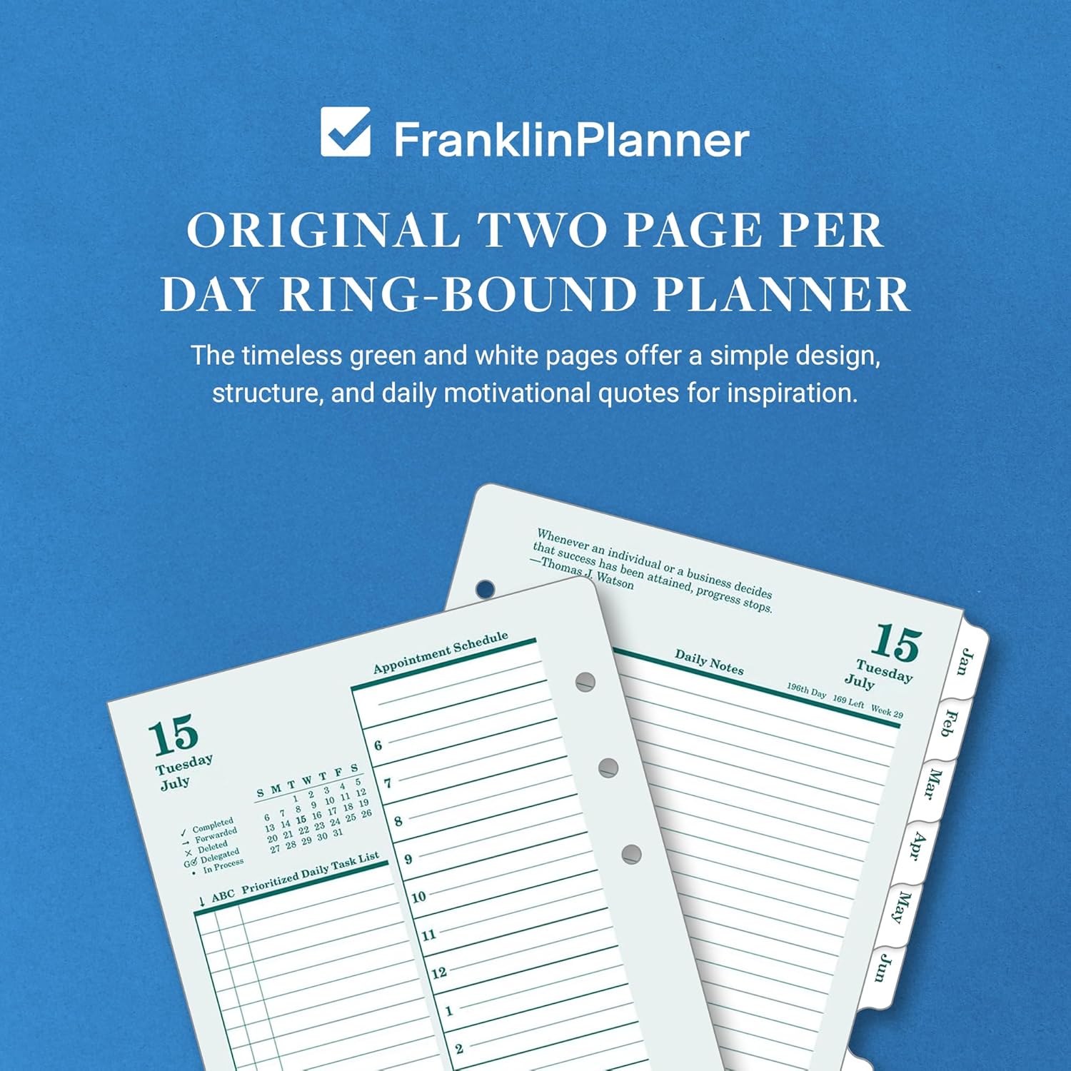 - The green and white pages that started it all continue to support those who appreciate a straightforward design and comprehensive structure. These classic daily planner pages feature quotes that provide daily motivation and inspiration.