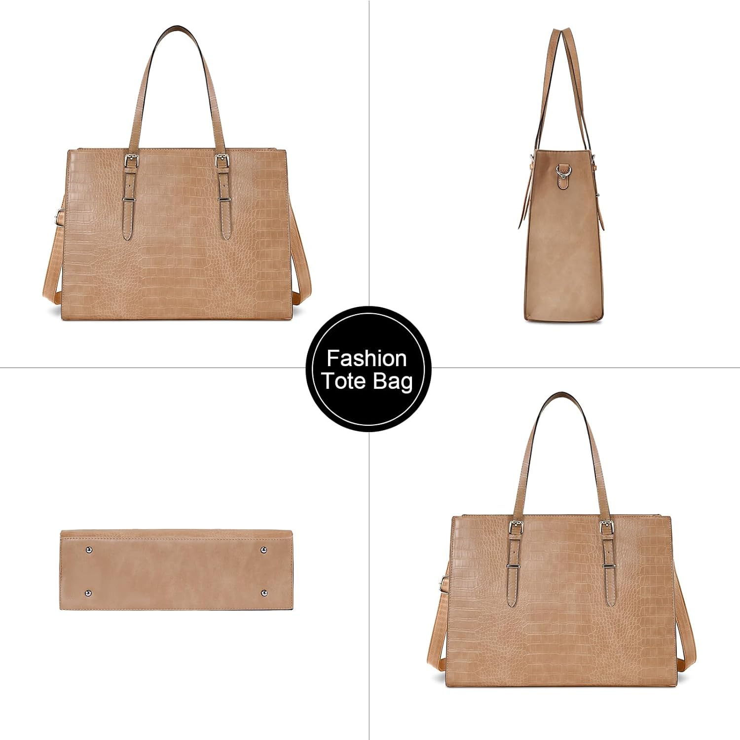 - Durable & Classy Women Laptop Bag:Lubardy tote bag made of prime crocodile pattern leather and polyester lining,offers water-repellent scratch-resistant advantage, trimmed with contrasting antique gold-toned hardware that conveys a classic chic fashion look and feel. The on-trend and easy matching colors will bring instantaneous modernity and freshness to any outfit. In addition,metal feet base protects your bag from damage.