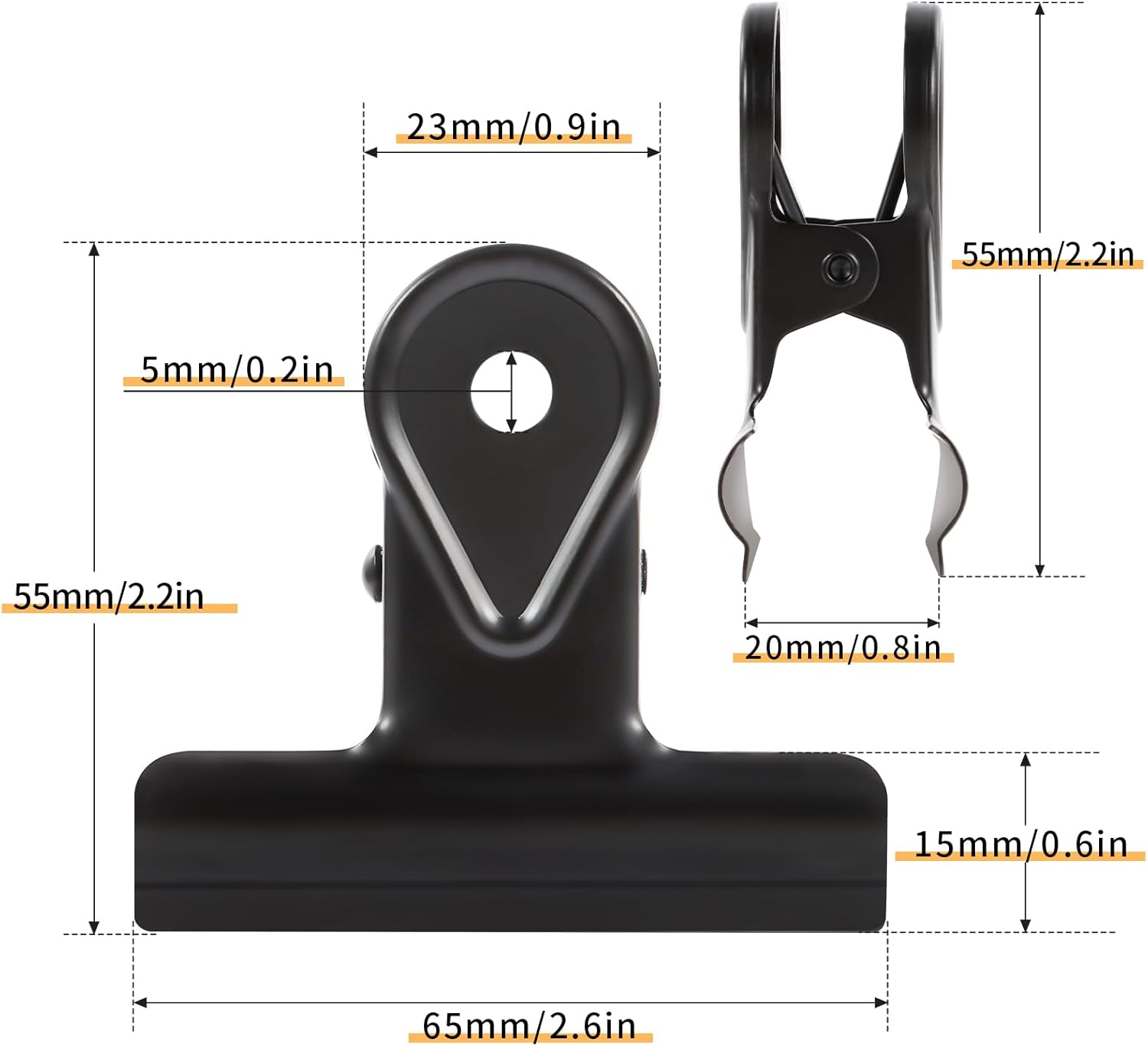 - This clip is 65mm (2.6 inches) wide and uses a high-quality spring. so it has a very strong bite force and is suitable for sealing kitchen food bags. It can also be used to store and organize office supplies.