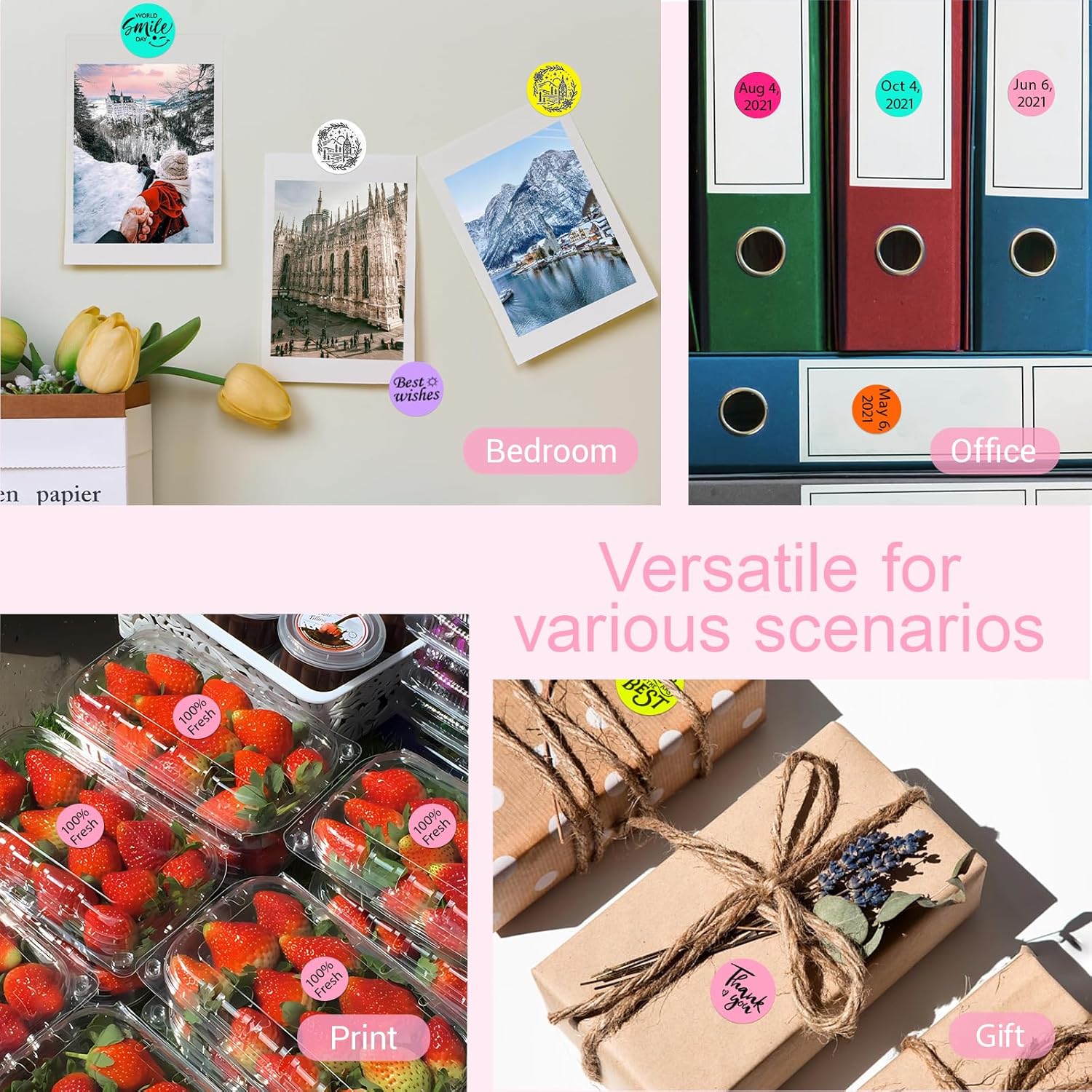 - What You Will Get: Each roll contains 1000 pieces of 1 inch round thermal labels. These color-coding sticker dots are easy to peel off and apply to various surfaces. Pink color round stickers are suitable for home sorting, office organization, business displays, etc