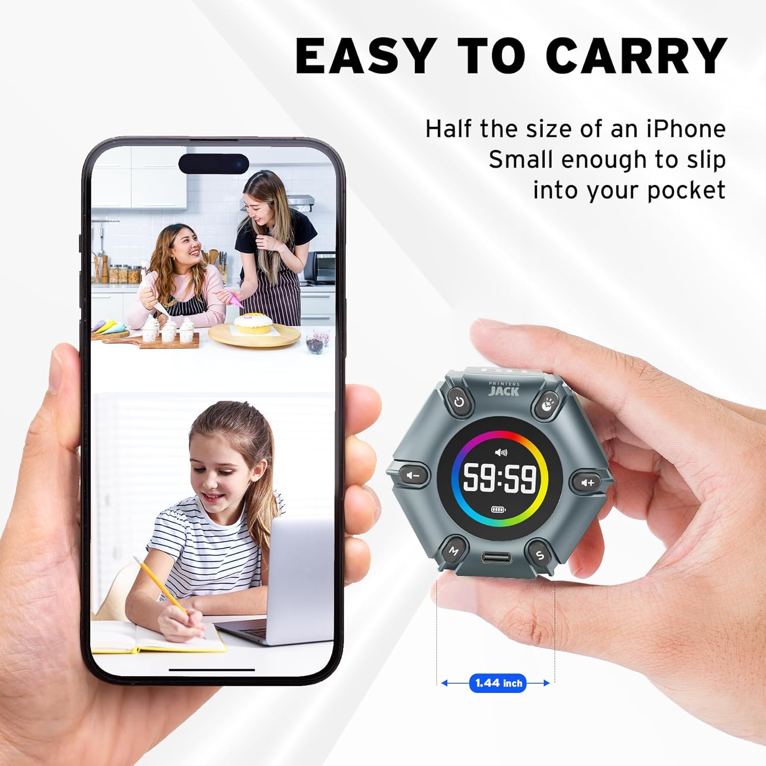 Printers Jack Timer, Visual Pomodoro Timer, Productivity Cube Mute & Vibration & Adjustable Sound Alert, for Office, ADHD, Study, Work, 3/5/10/25/30/60min & Custom Countdown - Iron Gray