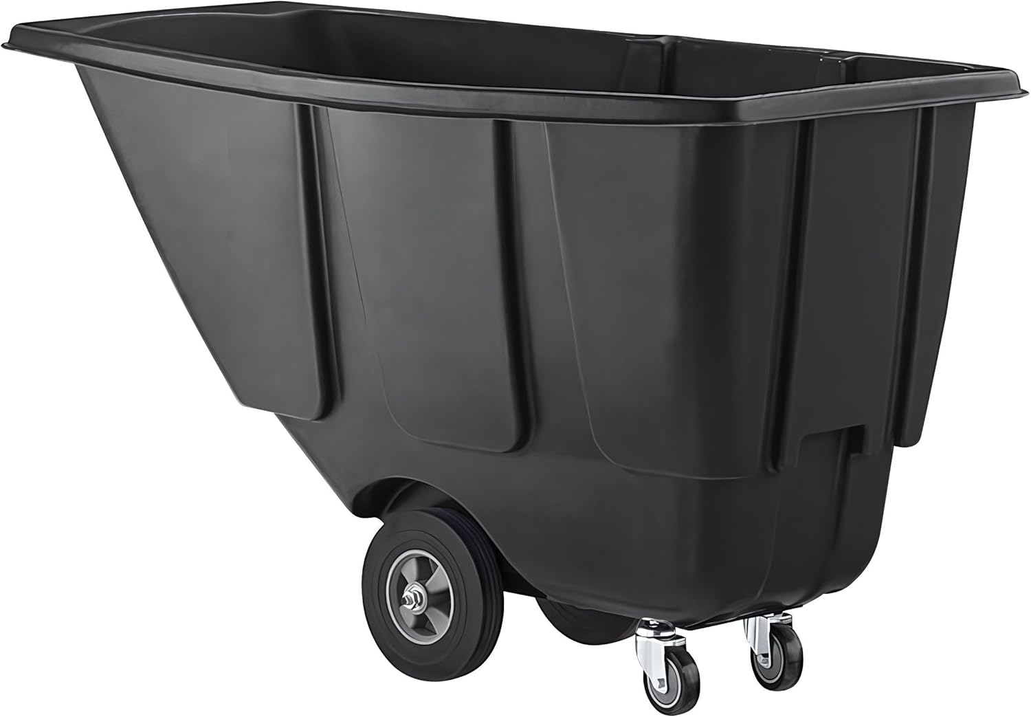 Commercial Rolling Waste Bin 0.5 Cubic Yard 450 lb., Black Tilt Truck, Construction Trash Recycling Trolley, Industrial Dump Cart Transportation, Garbage Wagon