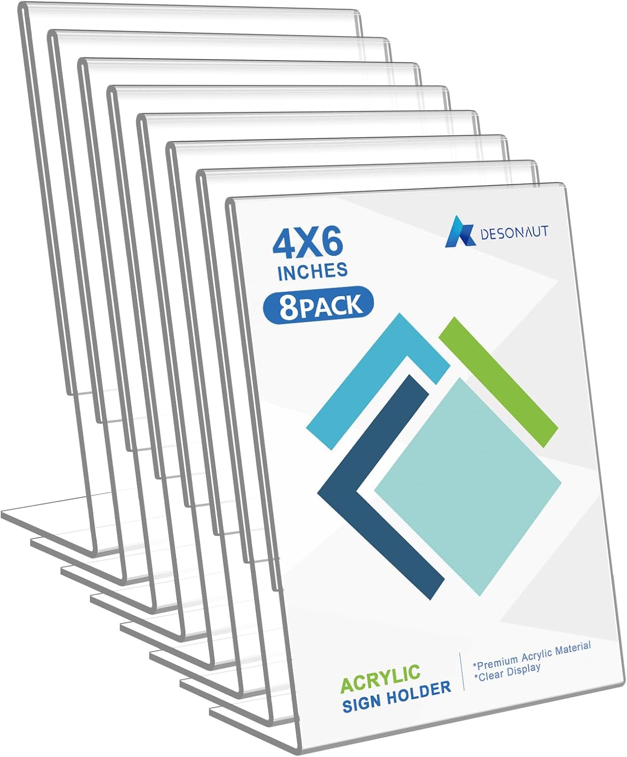 - Included:The package contains 8 pack of 4 x 6 inches clear acrylic sign holders,suit for displaying paper,picture