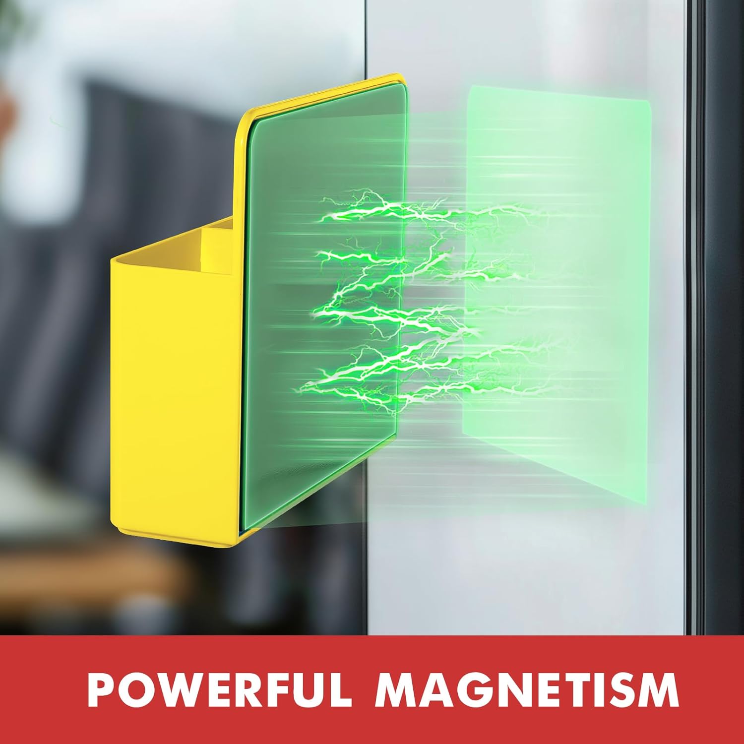 BEYGORM 2 Pack Plastics Magnetic Pen Holder for Refrigerator, Dry Erase Marker Holder for Whiteboard,Magnet School Locker Organizer Accessories, Pencil Cup, Pen Caddy, Classroom Organization(Yellow)
