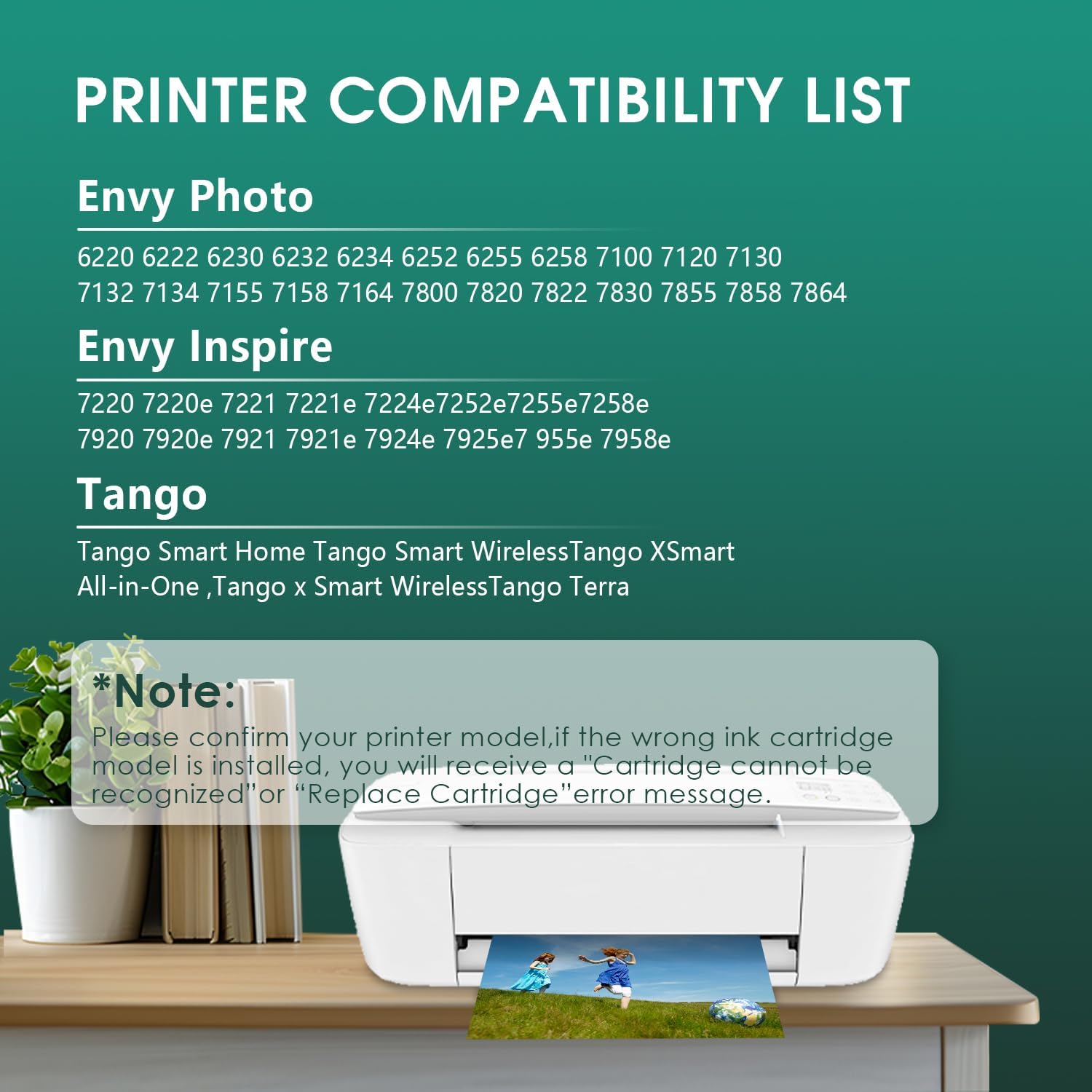 - Compatible with Envy Series : Photo 6220 6222 6230 6232 6234 6252 6255 6258 7120 7130 7134 7155 7158 7164 7822 7820 7830 7855 7832 7858 7864 Printer.
