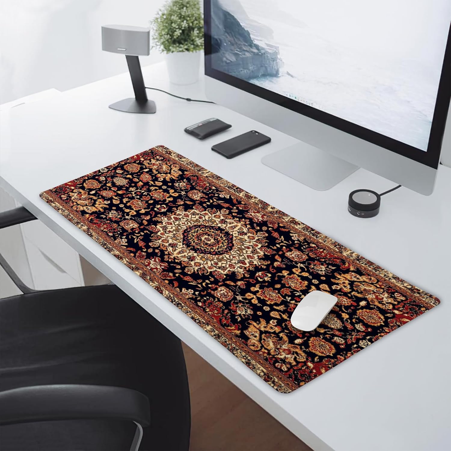 - ★【20x14 inches Large Mouse Pad】:The vintage rug mouse pad on the top of desks is large enough to fit your mouse, keyboard,and other items,offering plenty of room for gaming,office work,and daily use while protecting your desk.