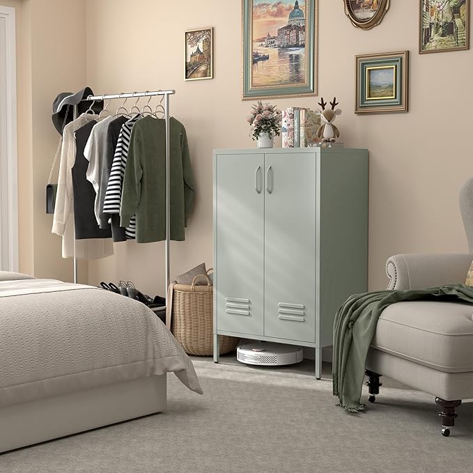 Metal Cabinet,Entryway Cabinet with Adjustable Shelves,Metal Storage Cabinet for Classroom,Living Room,Kitchen,Outdoor,Grey Green