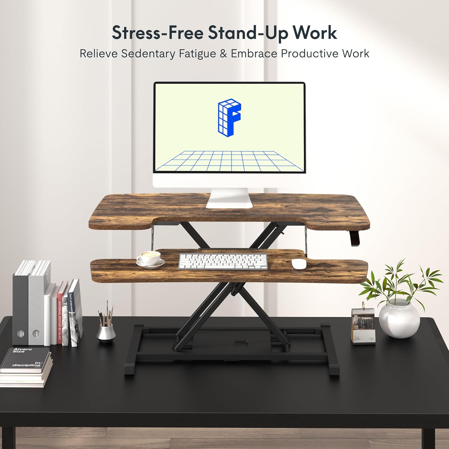 FLXISPOT 36" Standing Desk Converter, Quick Sit Stand up Desktop Riser Height Adjustable Monitor and Laptop Workstation with Keyboard Tray, Rustic Color
