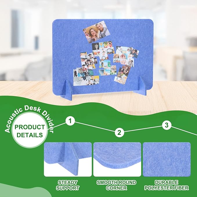 - Advantage: Excellent Material: Made of polyester fiber, these acoustic desk dividers are durable and reliable, and they are not easy to fade, break, or deform. It can reduce noise, and protect your privacy, effectively increasing your productivity and concentration; Portable Size: The portable and lightweight desk divider can be easily moved, and stored anywhere when not applied, saving you space. Stand Firmly: The support foot can ensure that the desk divider stands steadily without falling.