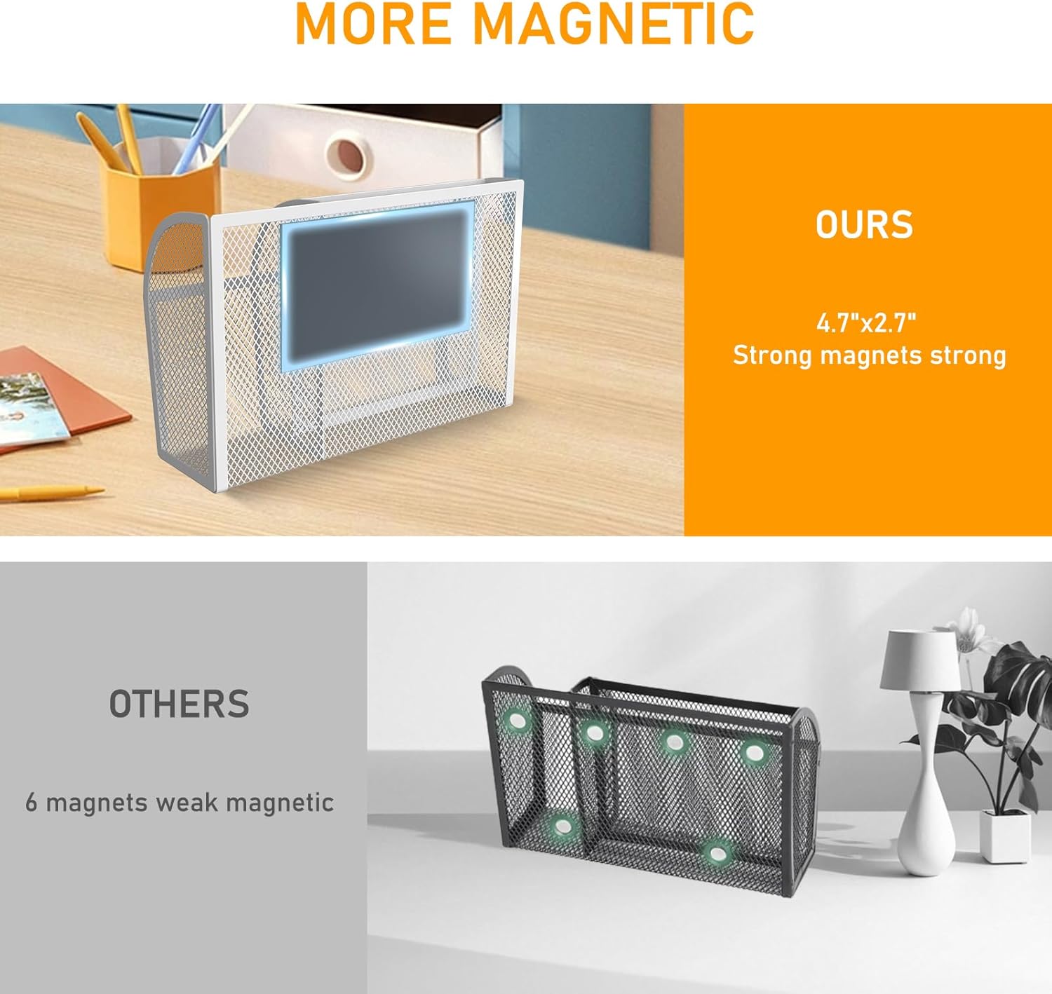 - Durable & Space-Saving: This magnetic marker storage basket offers ample storage for school, office, and kitchen supplies. Perfect for organizing pens, markers, clips, and more on refrigerators, lockers, whiteboards, and desks without taking up extra space.