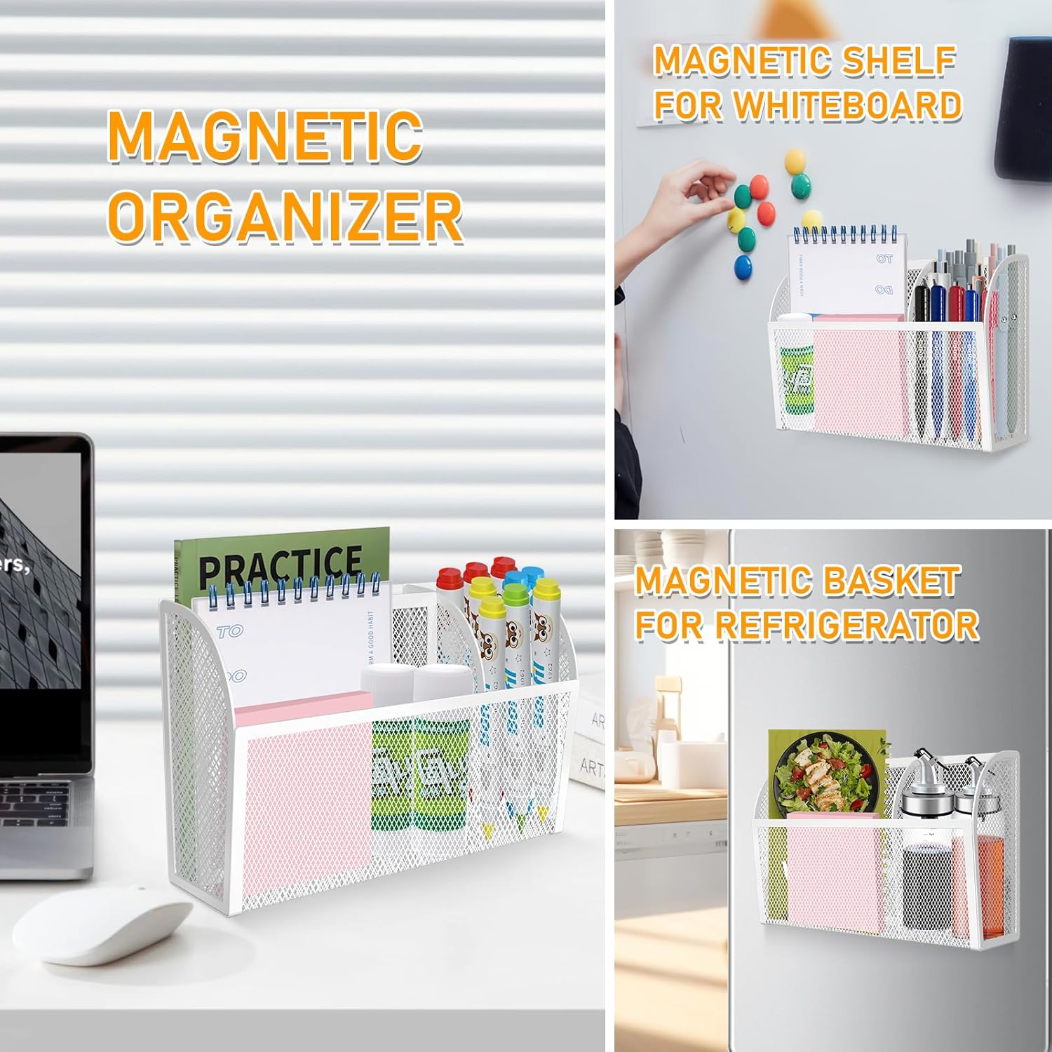 - High-Quality Magnetic Storage Box: Made of sturdy, lightweight wire mesh, this durable magnetic organizer resists bending and deformation. Featuring a 3-grid design with one large compartment and two smaller holders, it offers ample space for organizing essentials on refrigerators, lockers, and more.