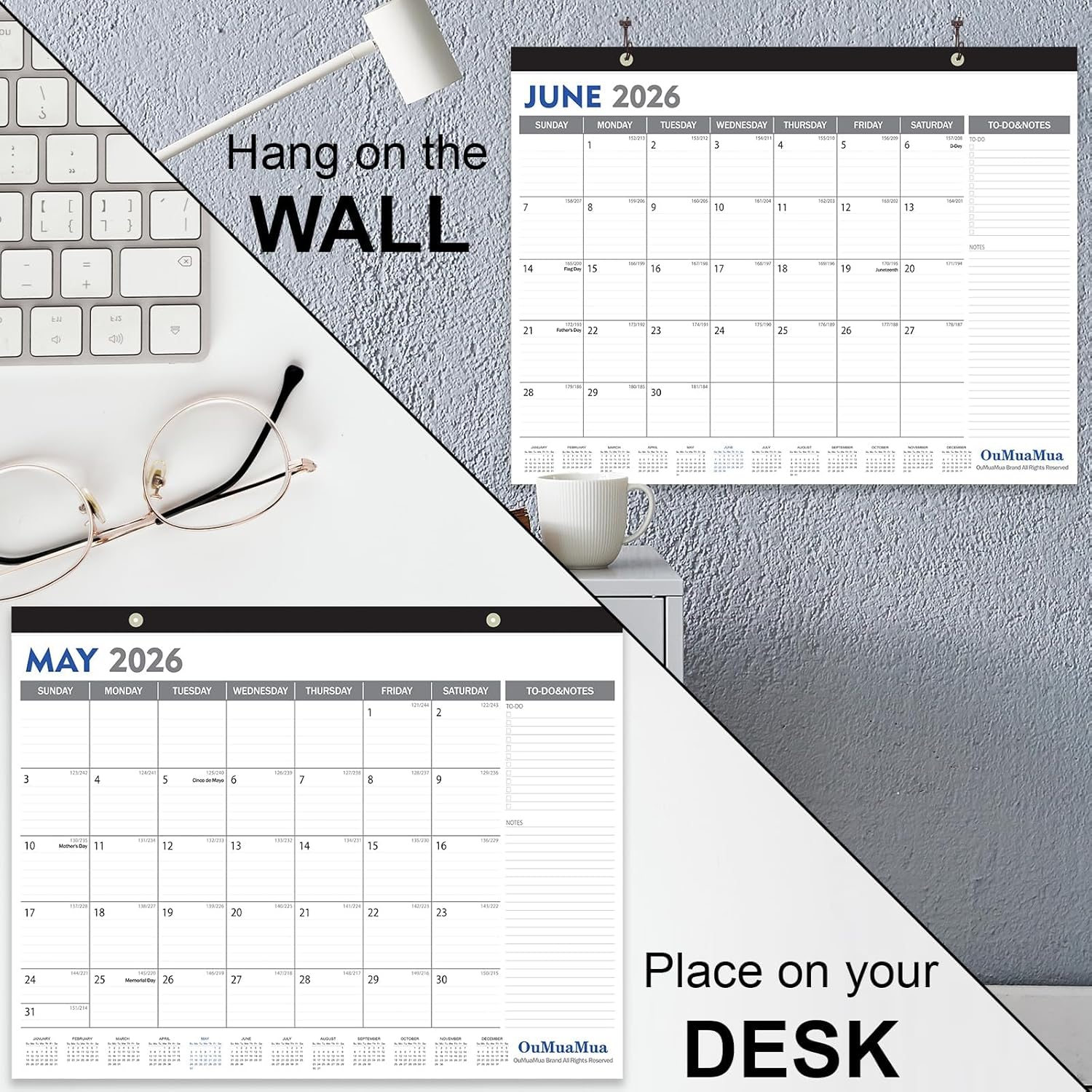 OuMuaMua 3-Pack Large Desk Calendars 2025-2026 - 19 Months from Jun. 2025 through Dec. 2026, 22" x 17" Desktop Wall Calendar with Julian Date To-do & Notes, Corner Protectors for School Home Office