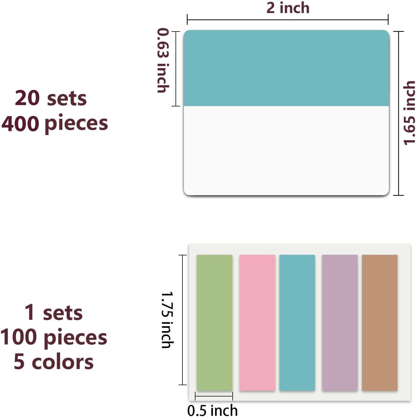 - Package Contents: 500 pieces 21 sets in total, 400 pieces 2 inch sticky tabs in 20 sets with 10 different pastle colors,100 pieces 0.5 in tabs in 1sets, 20 pieces each color