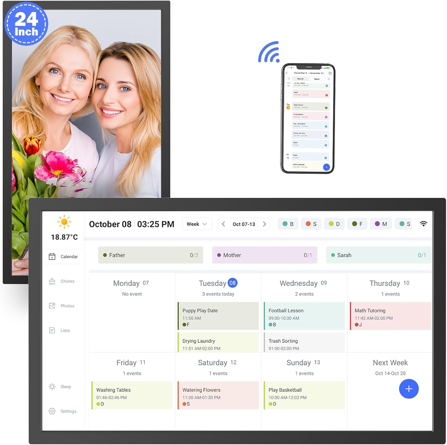 - 24-Inch Smart Calendar for All-in-One Family Management:This 24-inch smart calendar simplifies your life by combining a digital family calendar, chore chart for family, and task manager. Perfect for interactive calendar for family schedules.