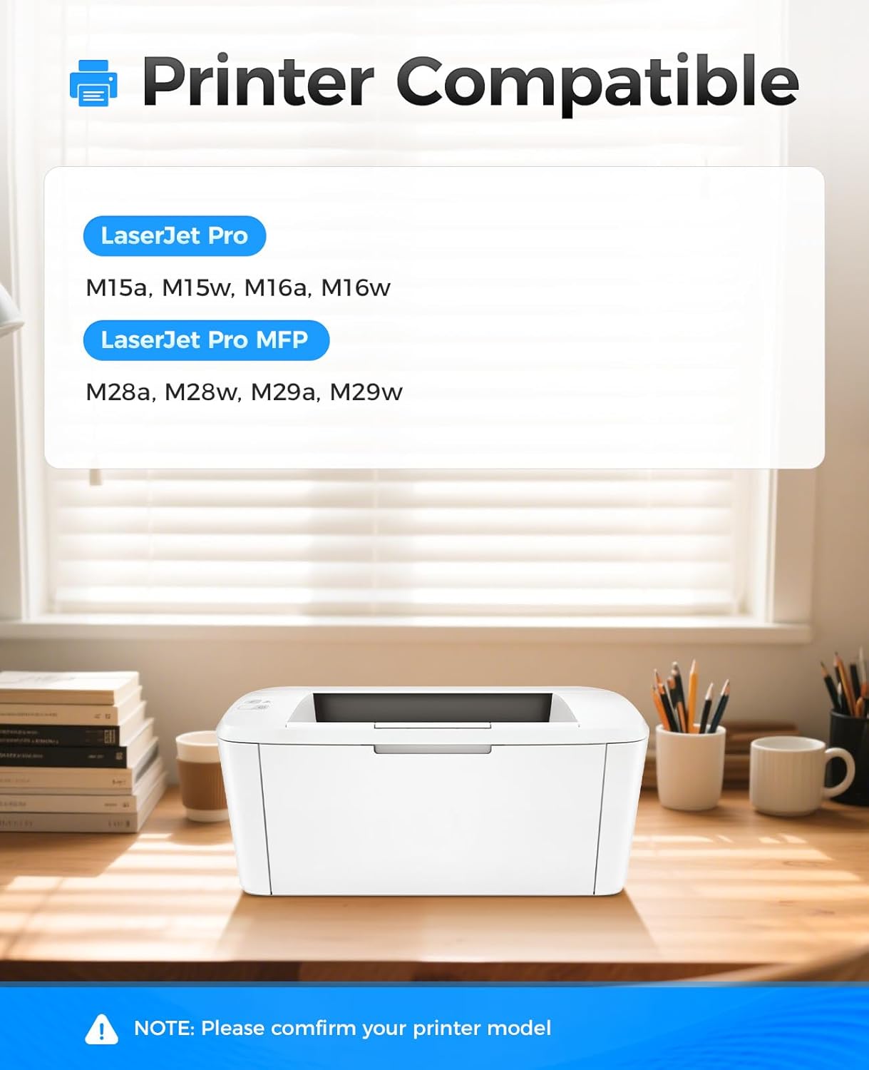 - Compatible with HP LaserJet Pro M15a M15w M16a M16w LaserJet Pro MFP M28a M28w M29a M29w Series Printer.