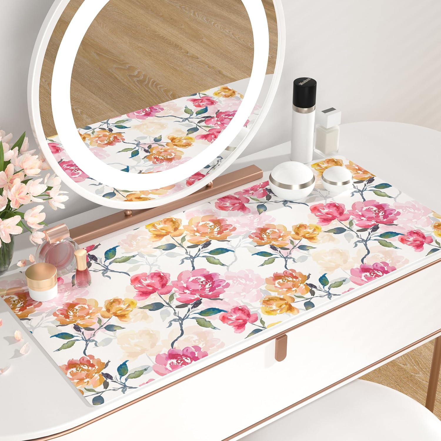 QIYI Floral Mouse Pad, Watercolor Flowers Desk Mat for Desktop, Women Girls Office Décor Accessories, PU Leather Waterproof Gaming Mousepad, Pink Yellow Peonies Desk Pad Computer Mat, 31.5" x 15.7"