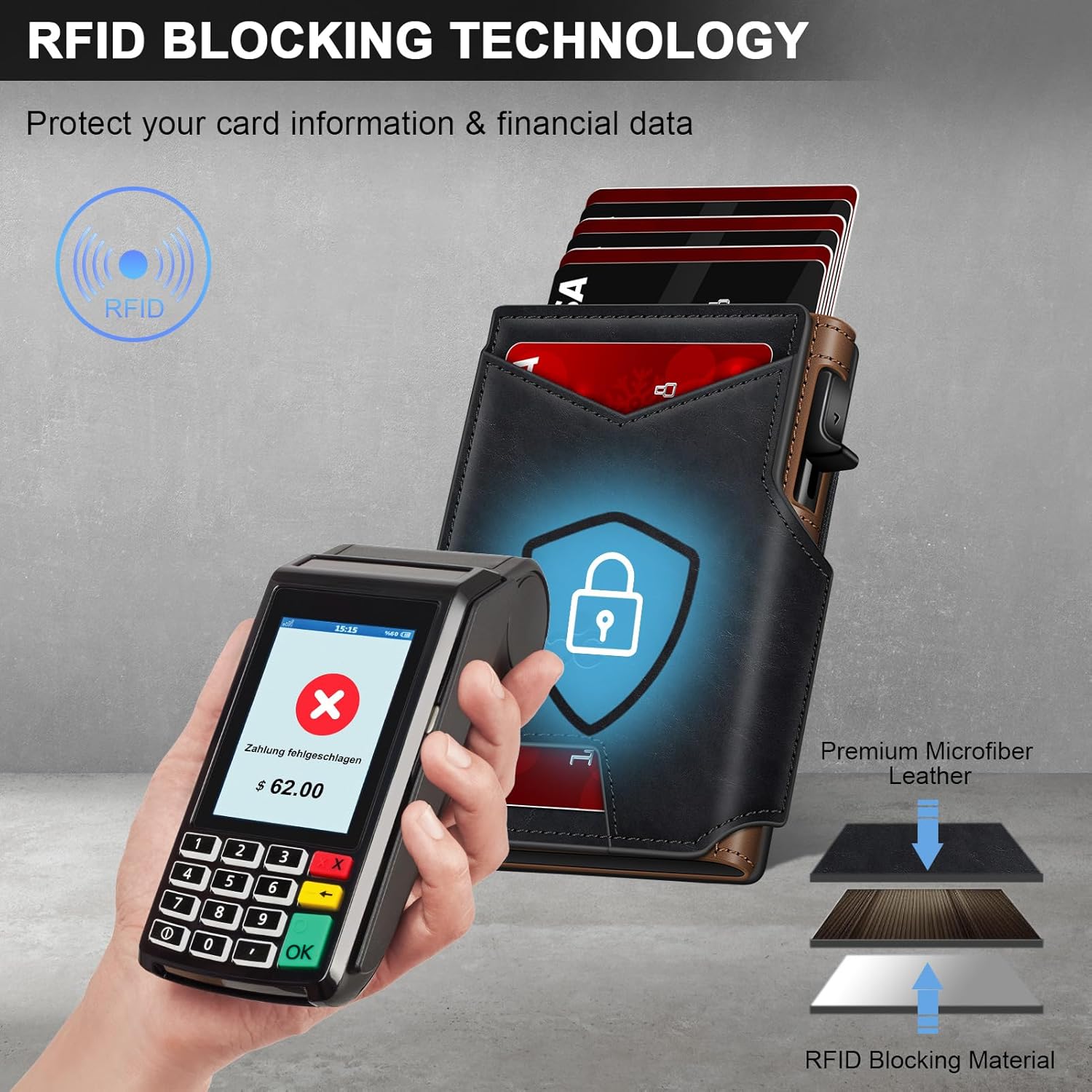 - RFID BLOCKING: The RFID Card holder of this metal wallet for men blocks unauthorized scans of your credit cards, debit cards, and driver’s license, providing maximum protection for your private information.